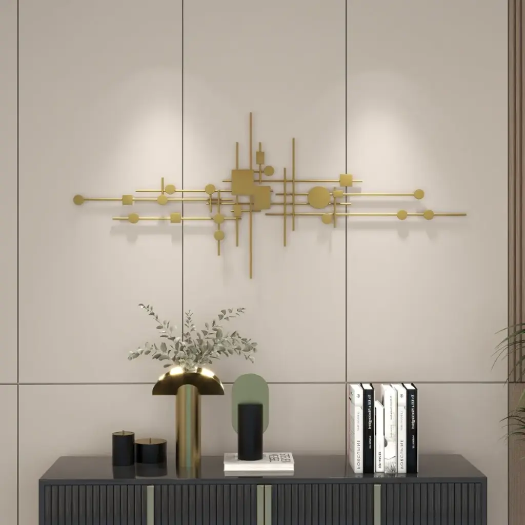 Bring a touch of modern glam to your home with this abstract gold wall art. Its bold geometric lines and layered shapes create a chic statement piece that adds depth and dimension to plain walls. Crafted from premium iron, this artwork radiates luxury while fitting perfectly in living rooms, dining areas, or hallways.