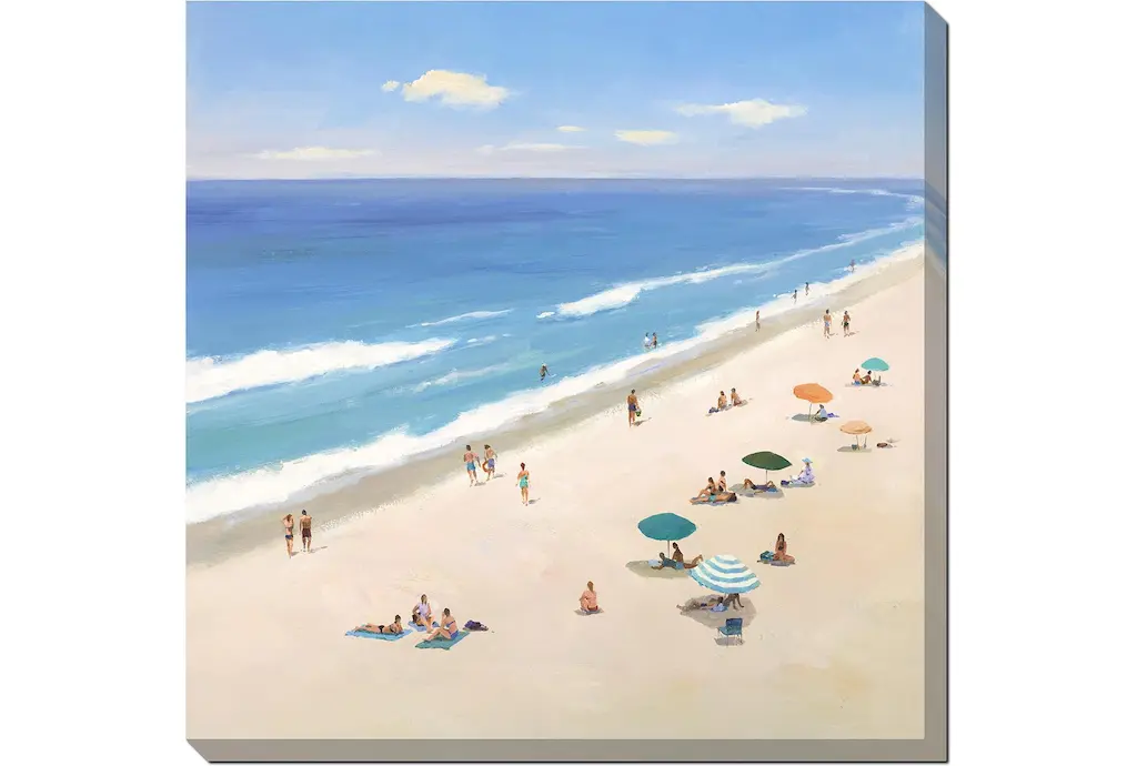 Bring the serene beauty of a beach day into your home with this stunning 47x47 Beach Day With Birch Frame. The vibrant blue and natural tones capture the essence of a coastal retreat, making it a perfect addition to any traditional decor. Made in the USA, this square framed art is designed to add a touch of summer charm to your living space.