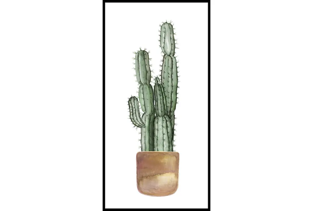 Add a touch of modern botanical charm to your space with the 47X47 Blooming Cactus framed art. Featuring a vibrant cactus print in green and brown hues, this square canvas is elegantly framed in champagne-colored wood. Perfect for bedrooms or nurseries, this piece is proudly made in the USA.