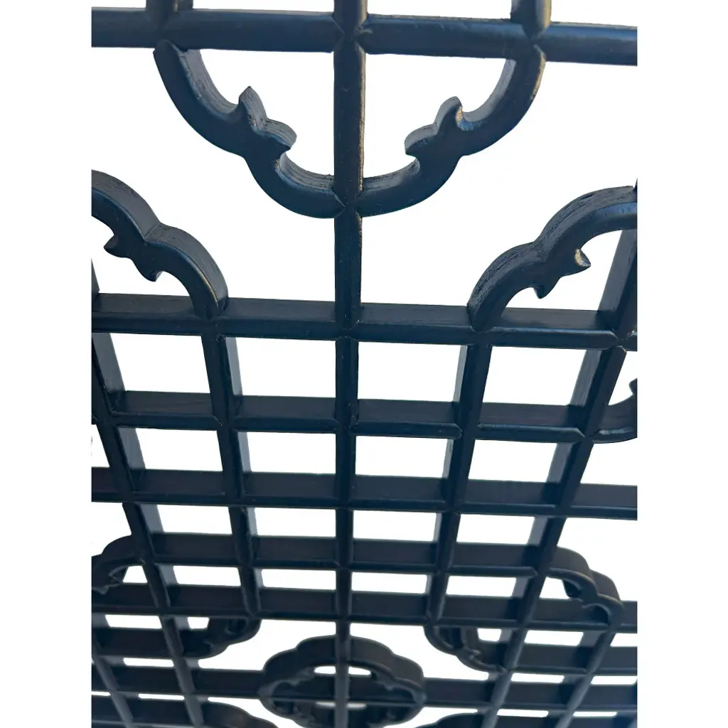 Add a modern touch to your space with the Black Lacquer Rectangular Wood Geometric Pattern Wall Panel. This sleek panel features a striking geometric pattern, beautifully crafted on a glossy black lacquered wood surface. The clean lines and contemporary design make it a versatile decorative piece, perfect for enhancing the aesthetic of any room, whether used as wall art or a stylish accent in a living room, bedroom, or office. Its bold yet elegant look brings depth and sophistication to both modern and traditional interiors.Dimensions: w17.75" x 49.25 " thickness 0.75"Origin: ChinaMaterial: Solid Elm WoodCondition: hand made, rustic rough finish, variation in detail