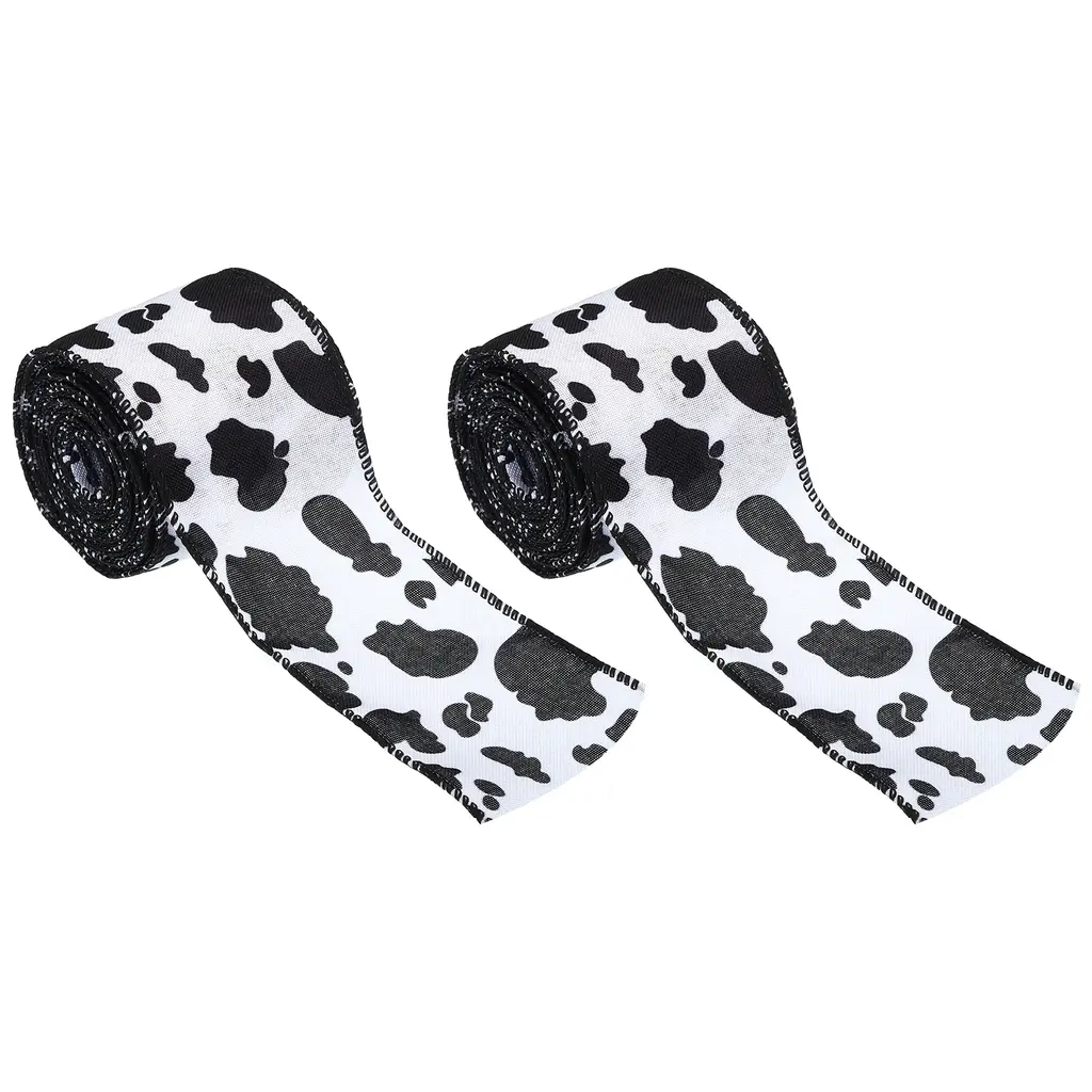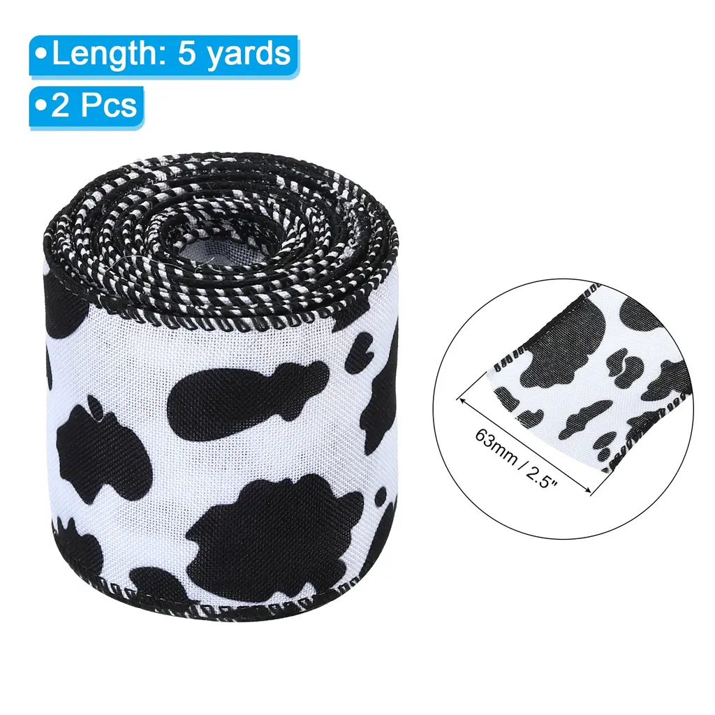 5 Yards Ribbon For Gift Wrapping, 2Pcs Cow Print Ribbons - 5 Yards X 63mm