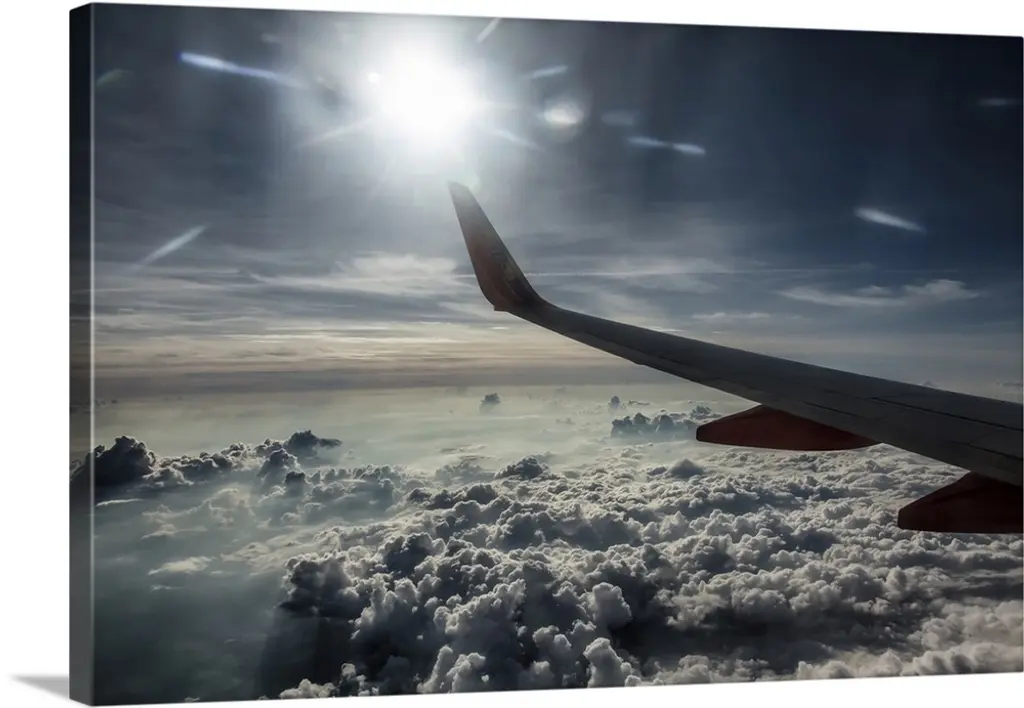 Experience the breathtaking view from above with the 52X42 Above The Clouds framed art. This contemporary piece features a stunning black and white photograph that captures the essence of transportation and adventure. Perfect for adding a touch of sophistication to your bathroom or any room in your home.