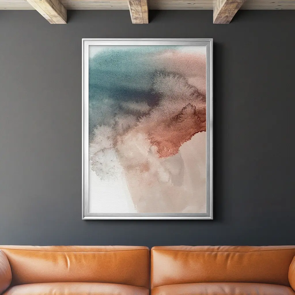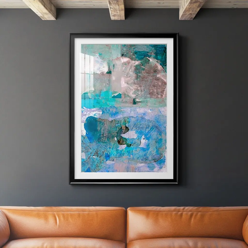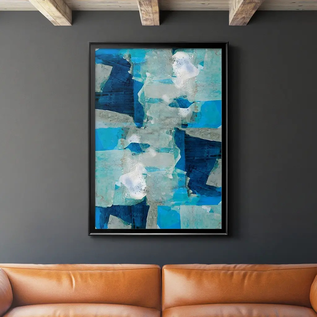 52x42 Turquoise Abstraction Rectangle | Silver Frame | Framed Art | Print | Made In The Usa | Horizontal