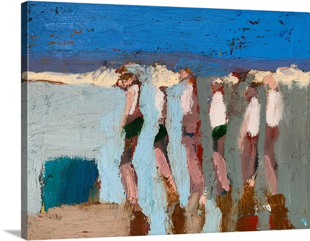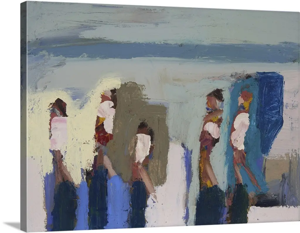 Elevate your living space with the 56X38 Hustle And Bustle With Silver Frame. This modern framed art piece captures the dynamic energy of people in motion, rendered in vibrant blue, black, and white hues. Made in the USA, it features a durable canvas and wood construction, complemented by a sleek silver frame.