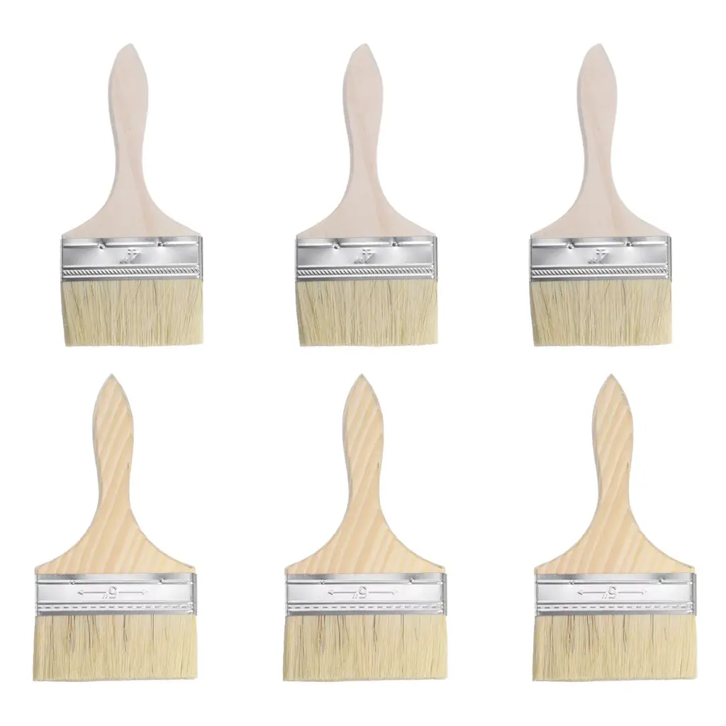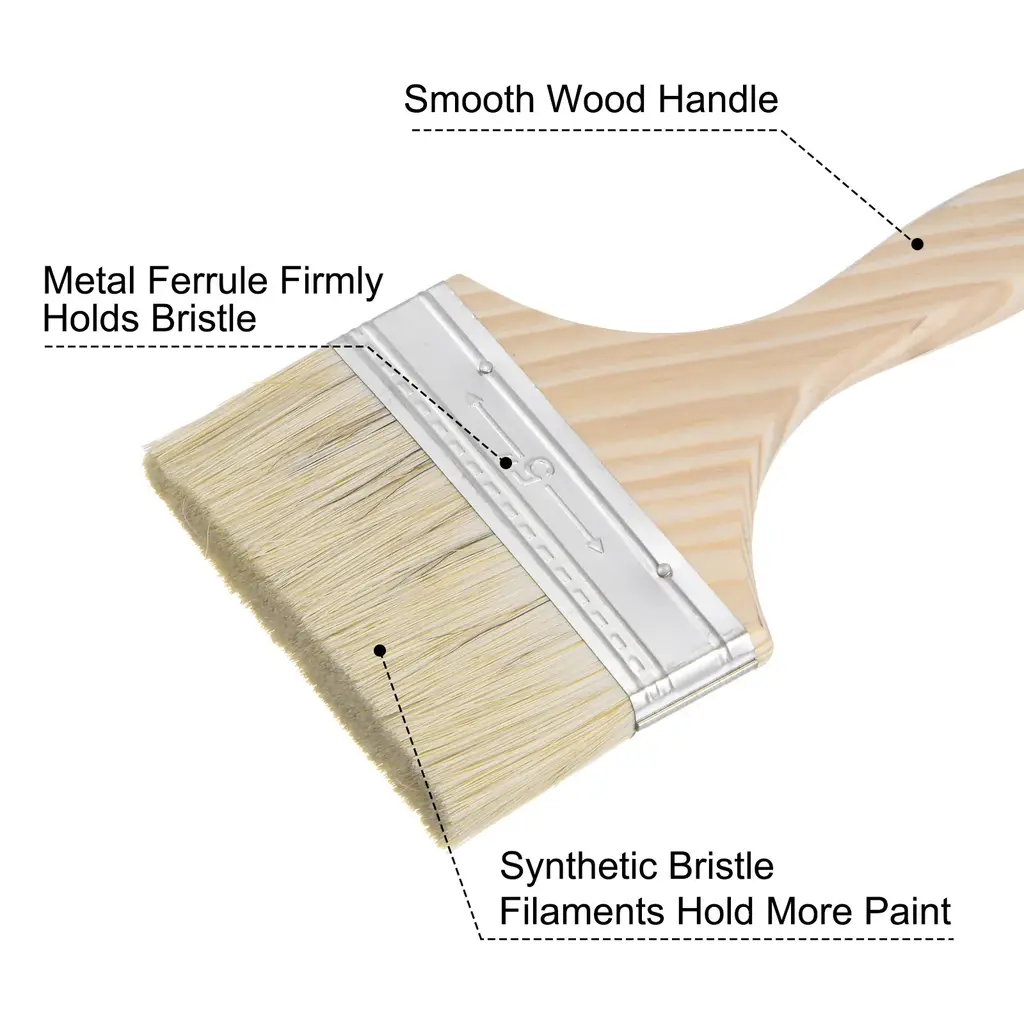 5Inch 4Inch Paint Brush Synthetic Bristle With 13mm Thick Wood Handle 6Pcs - Wood Color - 5" - Wood Color - Brushes