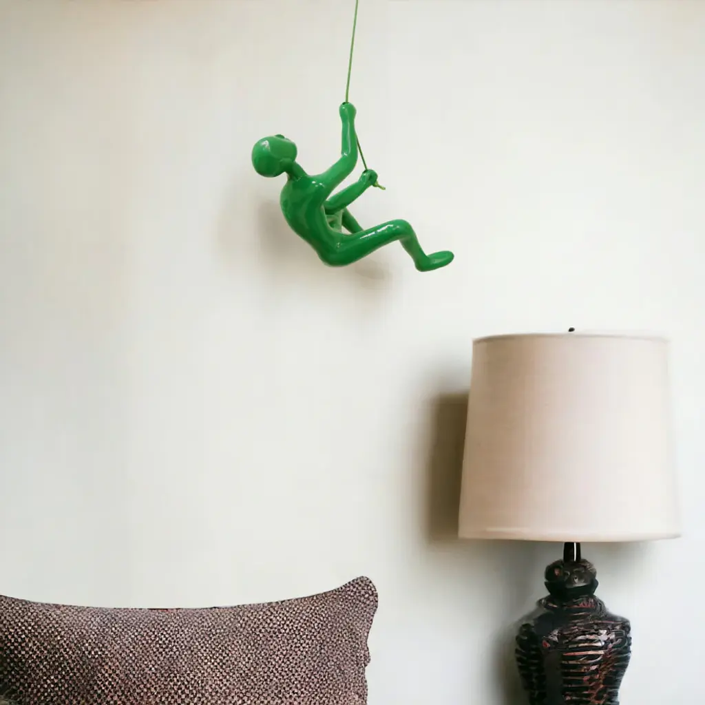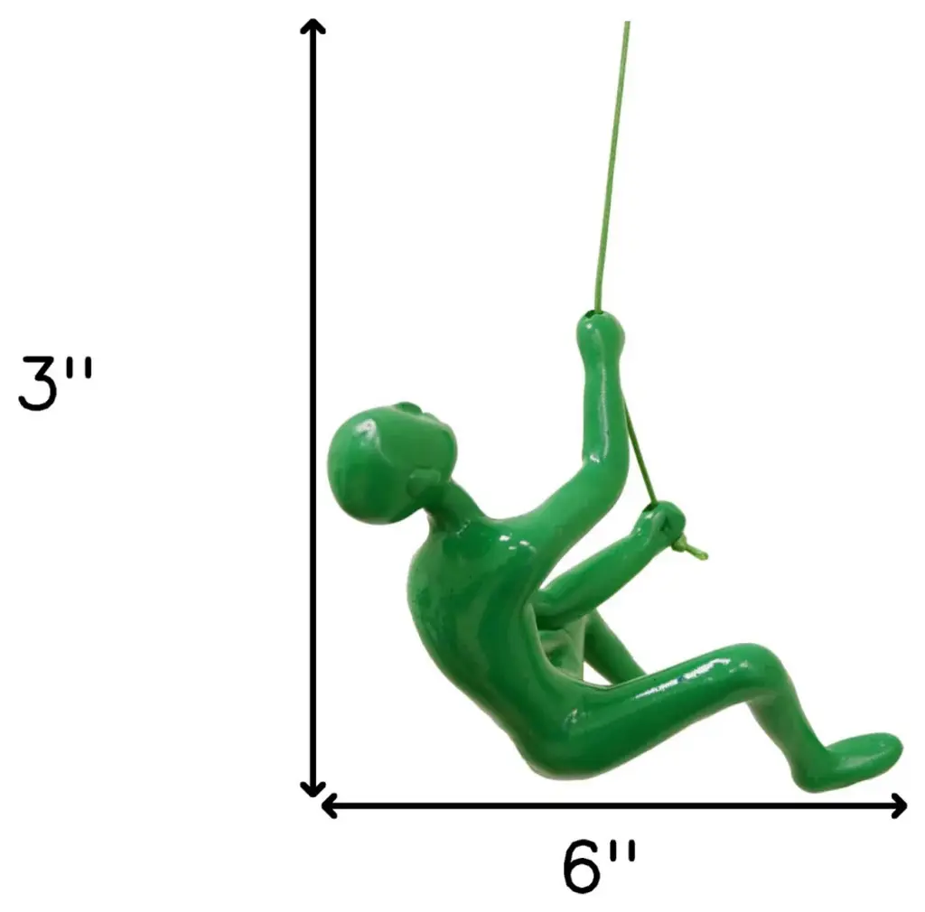 6" Green Unique Climbing Man With Rope Wall Art