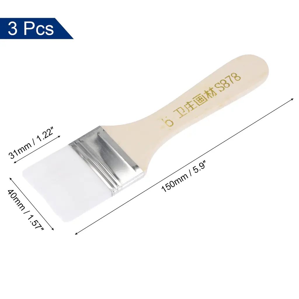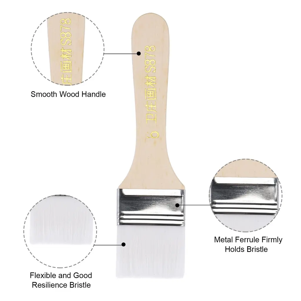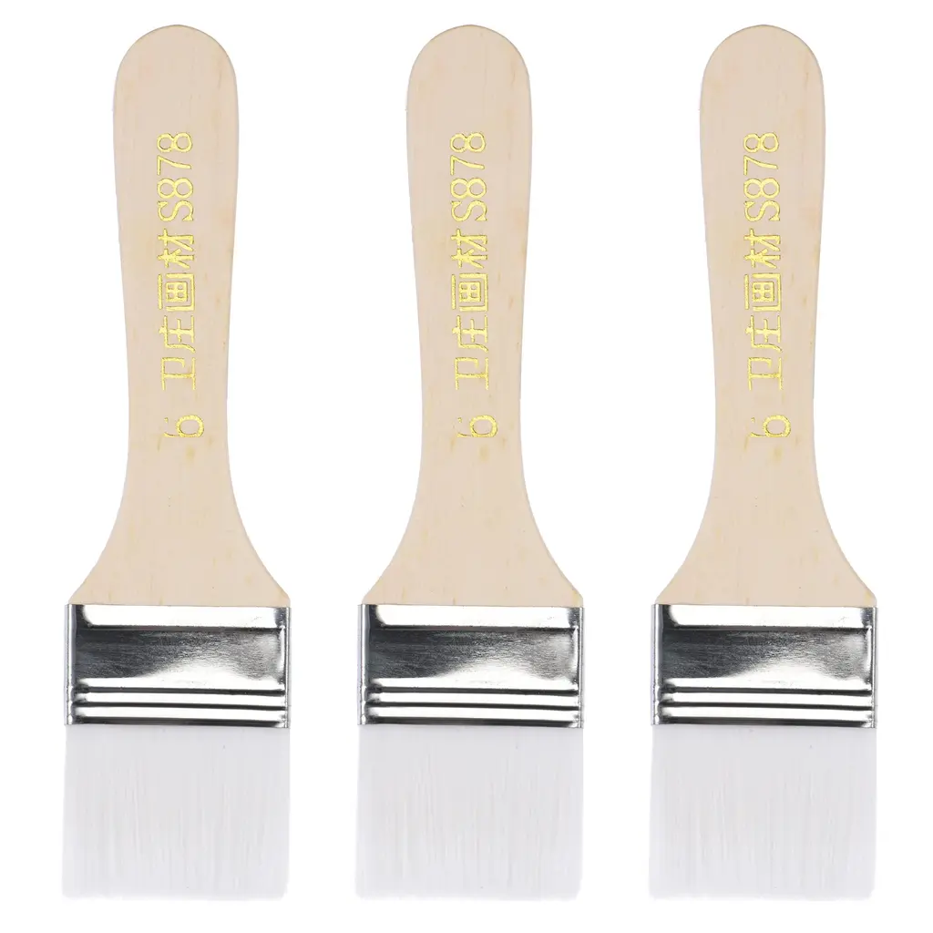 6" Paint Brush 1.6" Width Soft Nylon Bristle W Wood Handle White 3Pcs - 6" X 1.6" - White - Brushes