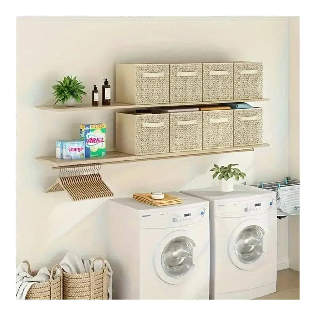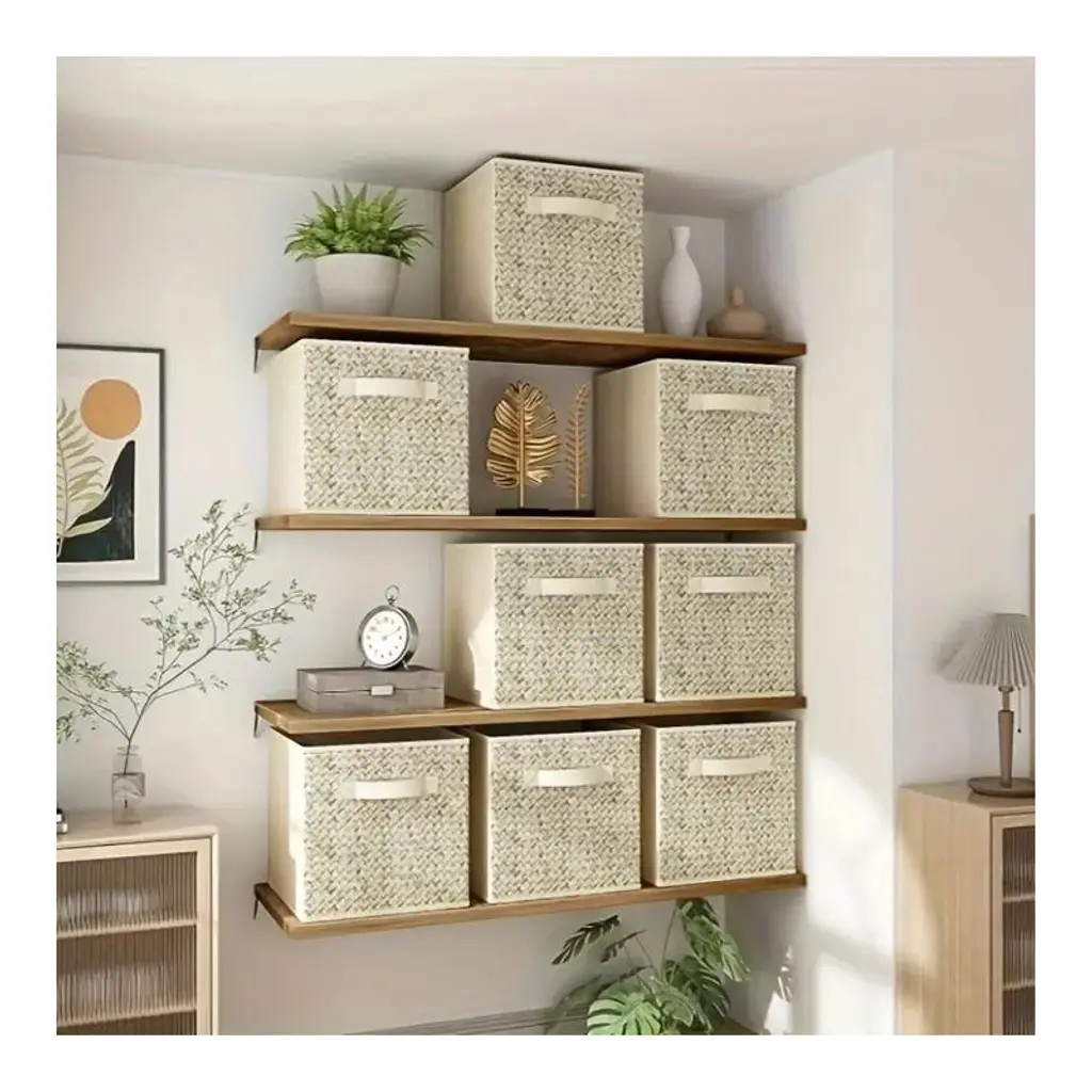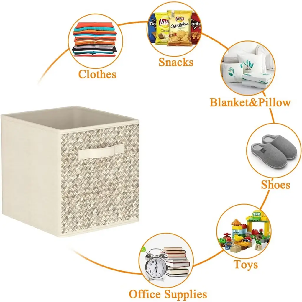 This set includes 6 beige woven storage boxes, each featuring a convenient PU handle for easy access.They are perfect for organizing toys,clothes,or other items,and come in a stylish design that complements various home decors.Multiple pattern options are also available to suit different preferences.