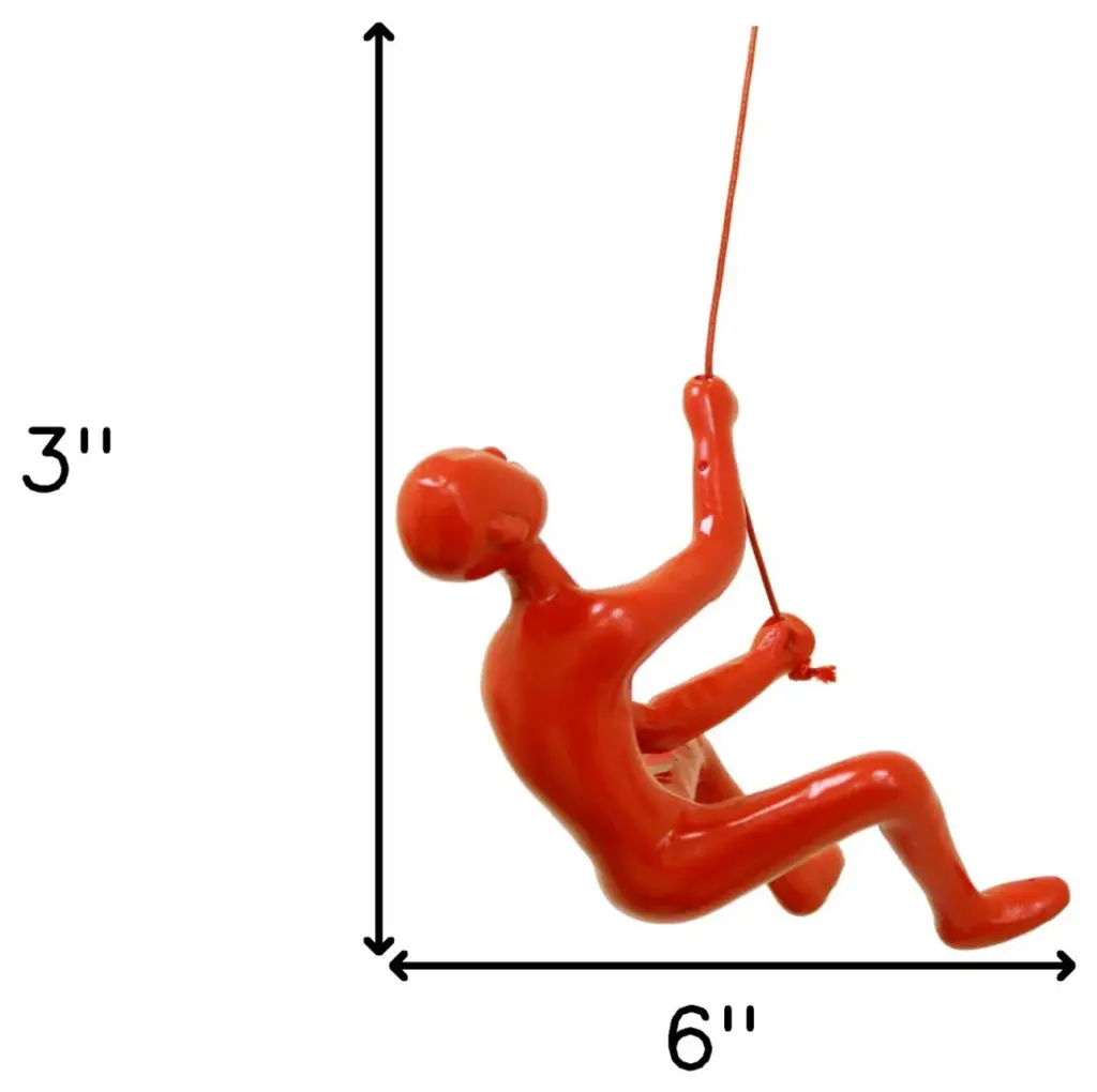 6" Red Unique Climbing Man With Rope Wall Art