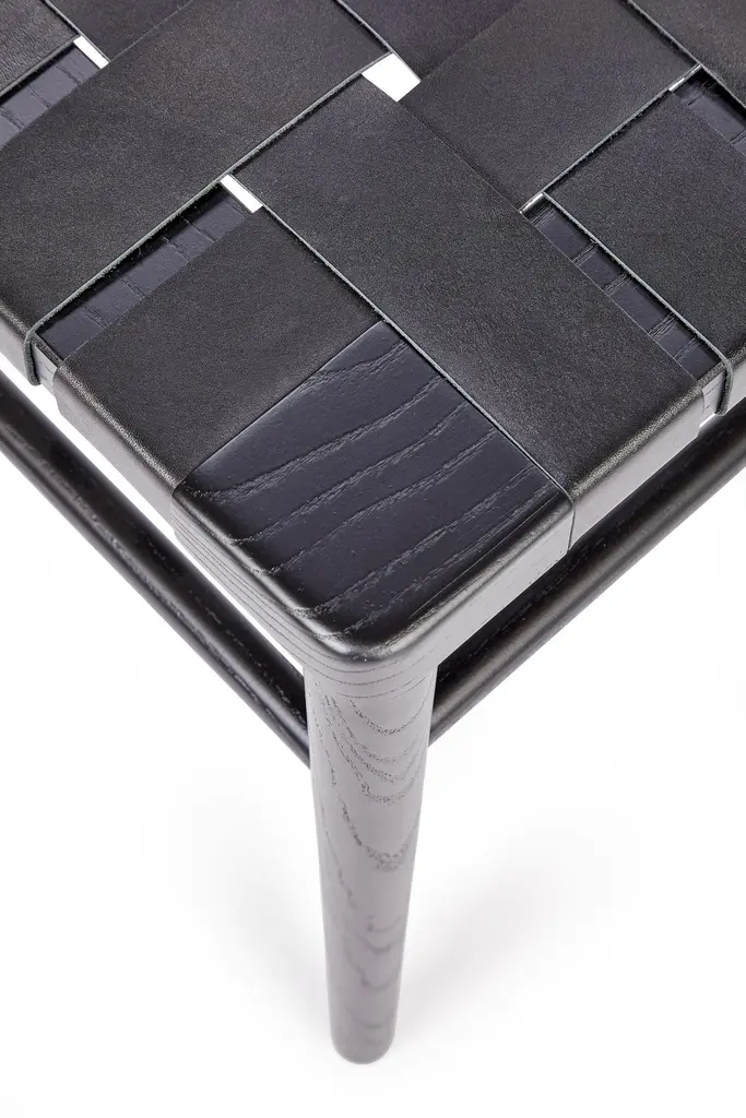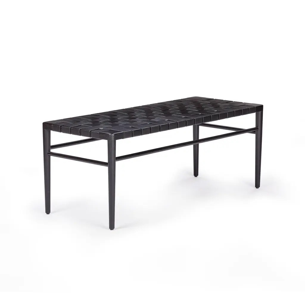 60" Woven Leather Bench In Ebonized Ash And Black Leather By Mel Smilow