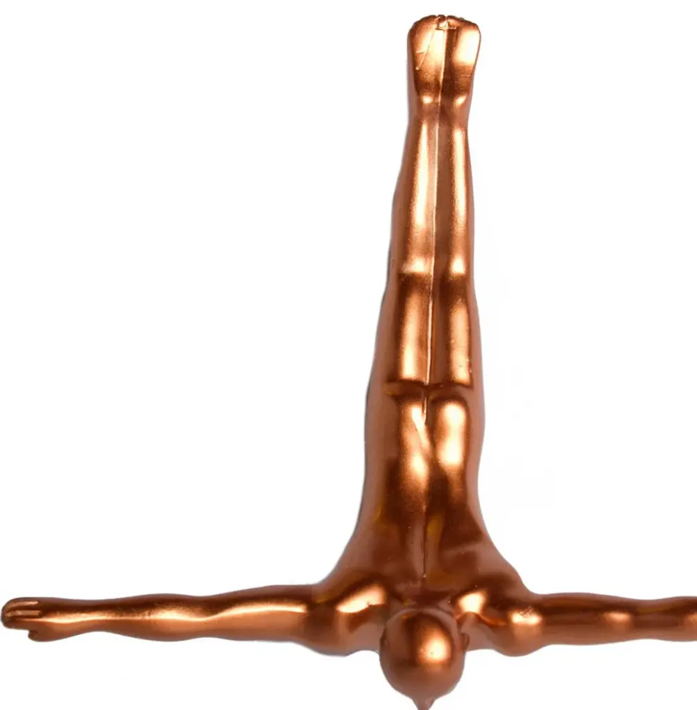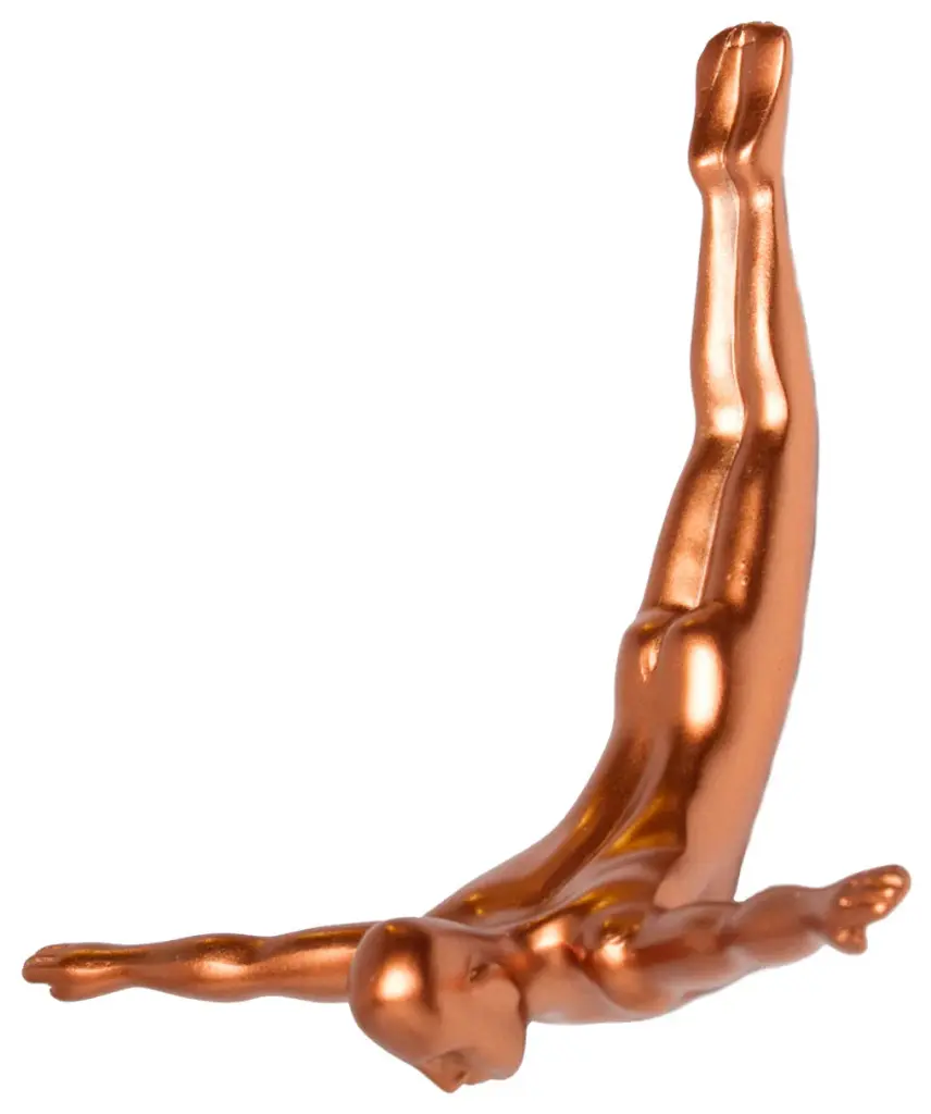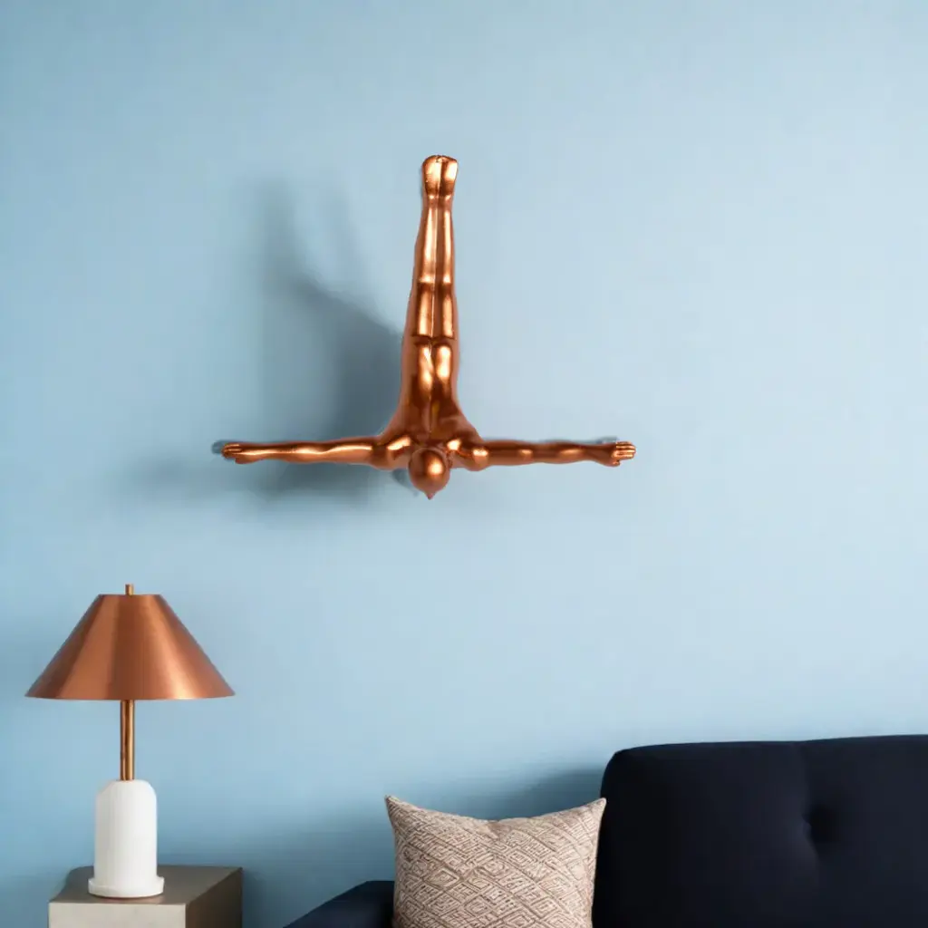 Enhance your room''s ambiance with this truly unique resin wall decor in a modern warm bronze finish. Elevate your living space effortlessly by incorporating this contemporary piece into your decor scheme. Crafted from high-quality resin, this eye catching three dimensional decor gives the impression of a diver coming out of the wall.6.5-inch H x 6.5-inch W x 2.5-inch D