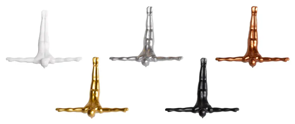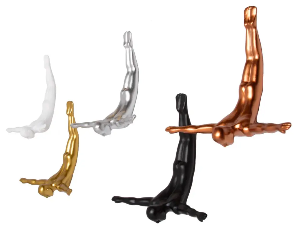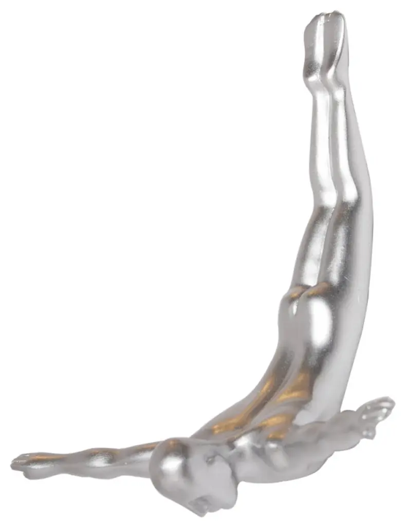 Enhance your room''s ambiance with this truly unique resin wall decor in a modern silver finish. Elevate your living space effortlessly by incorporating this contemporary piece into your decor scheme. Crafted from high-quality resin, this eye catching three dimensional decor gives the impression of a diver coming out of the wall. 6.5-inch H x 6.5-inch W x 2.5-inch D