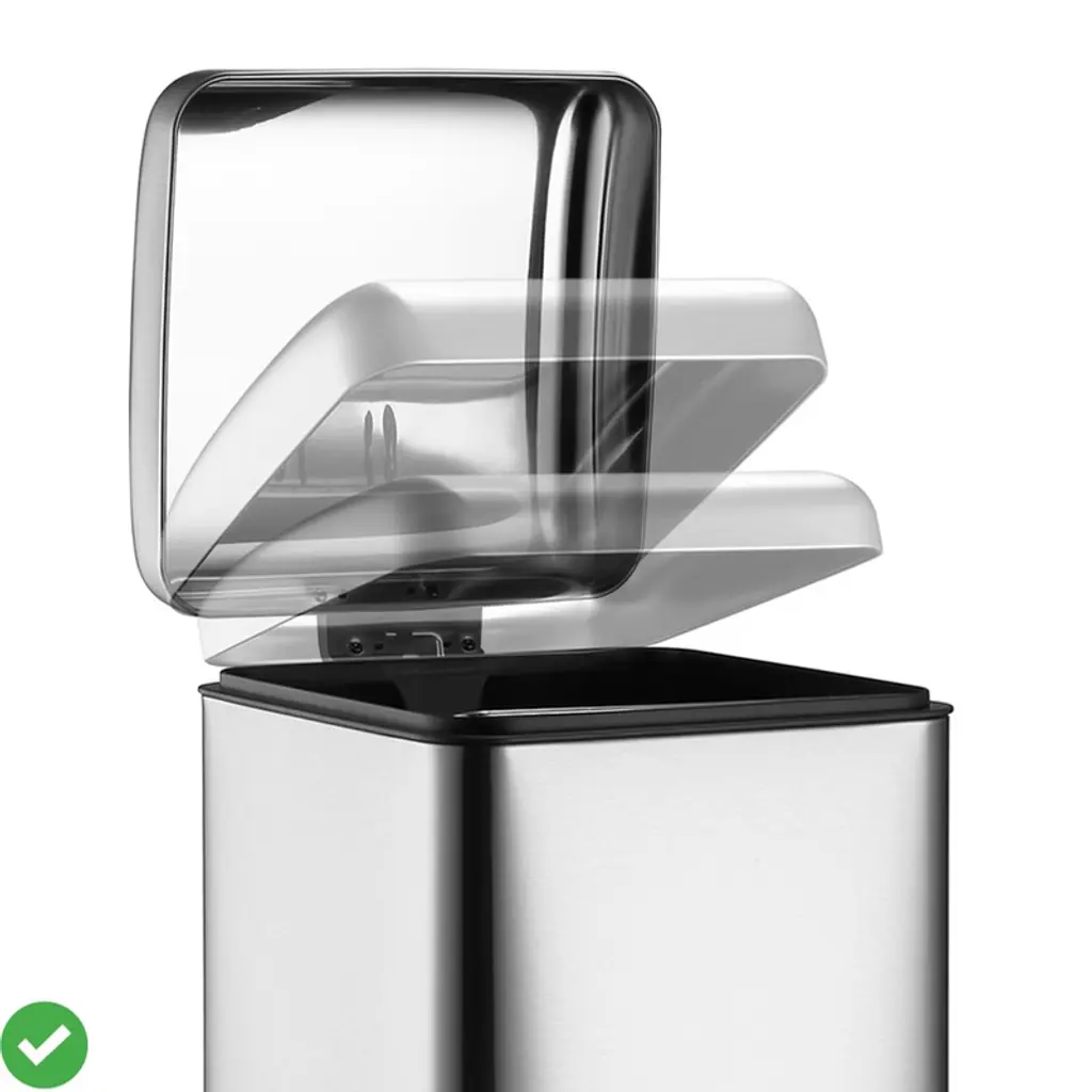 Premium Heavy-Duty Stainless Steel Construction:Crafted from durable, fingerprint-proof stainless steel, this stainless steel trash can maintains a pristine, smudge-free look, perfectly complementing any modern kitchen trash bin while ensuring long-lasting use, Stainless Steel Garbage Can with Soft-Close Lid, Fingerprint-Proof 8 Gallon/30 L Kitchen Trash Can, Recycle Bin with Removable Inner Buckets and Foot Pedal for Office Bedroom Bathroom.