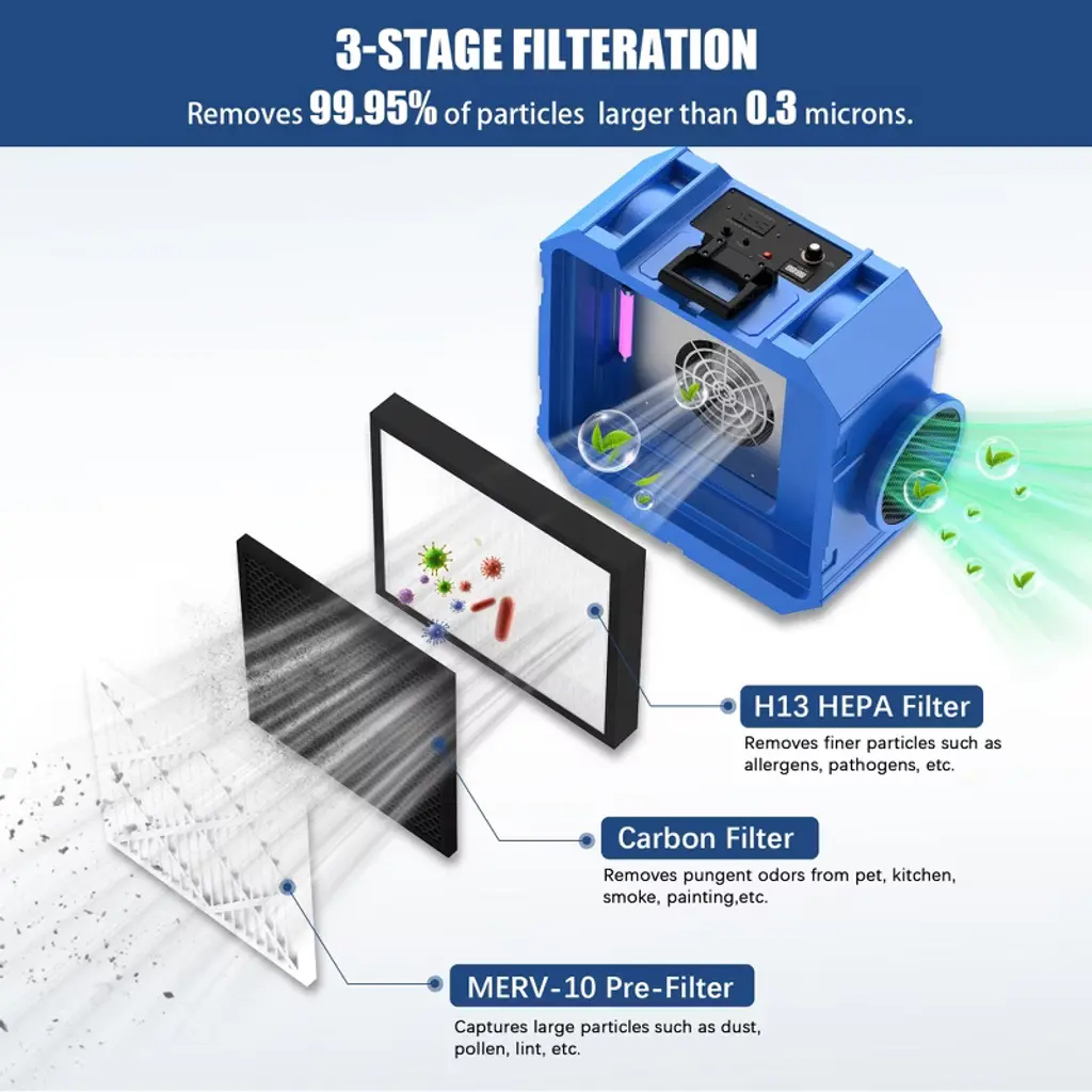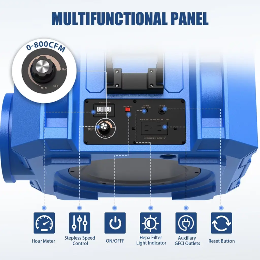 800cfm Hepa Air Scrubber With 3-stage Filtration For Heavy Duty, Blue