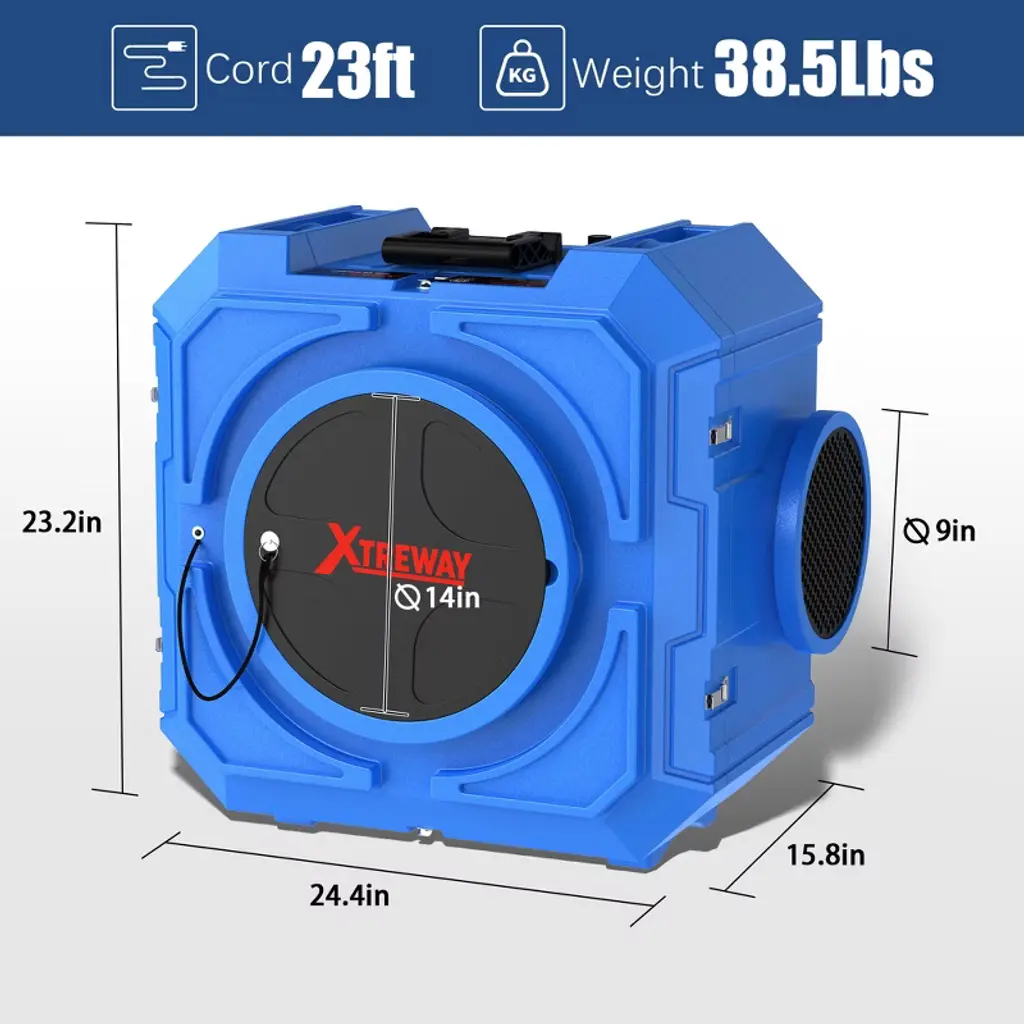 Air Scubber X800 can be used in commercial and industrial applications for painting, remodeling, sewage treatment, remediation, fire damage repair, and water damage repair. A must for long term work in dusty environments!
