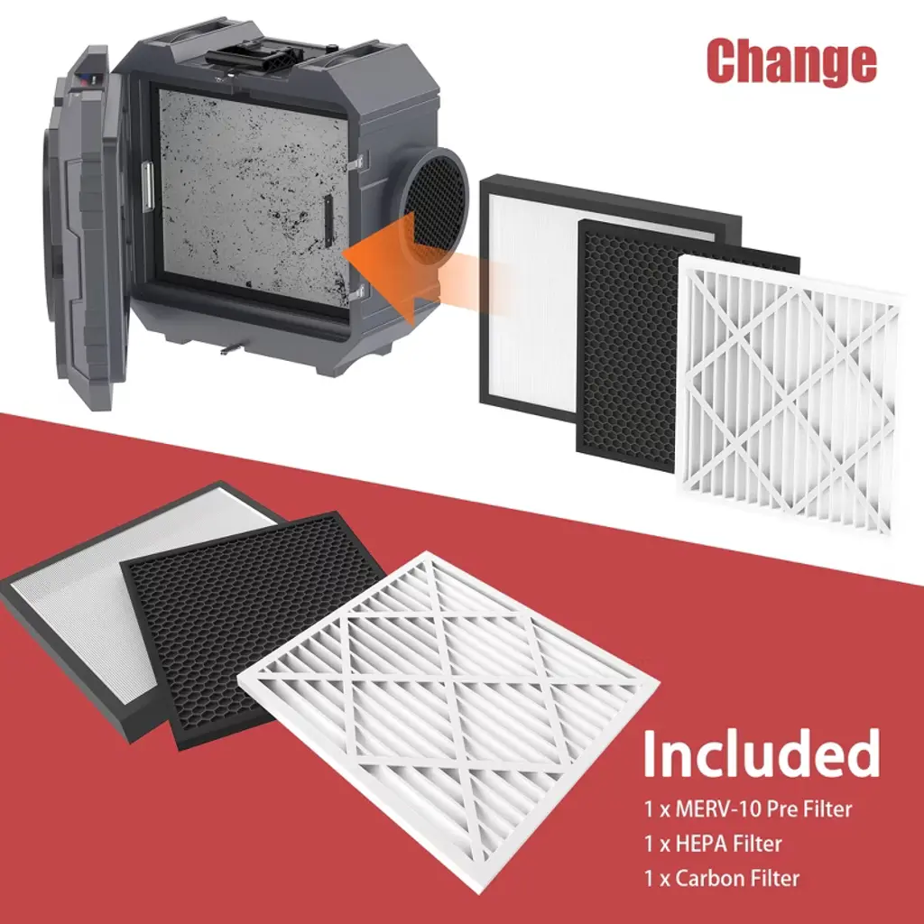 Air Scubber X800 can be used in commercial and industrial applications for painting, remodeling, sewage treatment, remediation, fire damage repair, and water damage repair. A must for long term work in dusty environments!