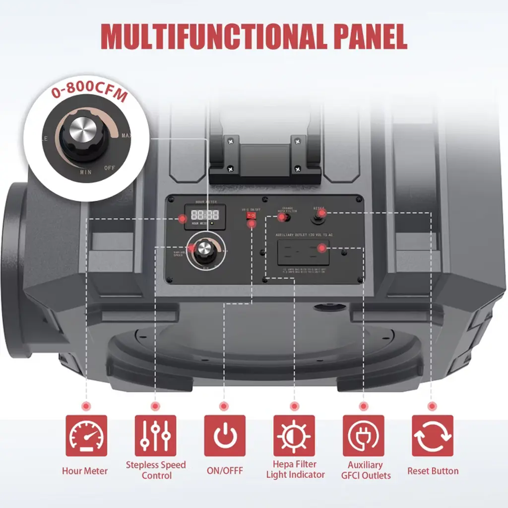 800cfm Hepa Air Scrubber With 3-stage Filtration For Heavy Duty, Gray