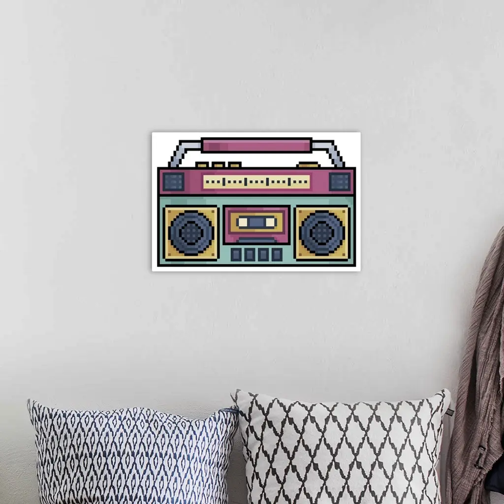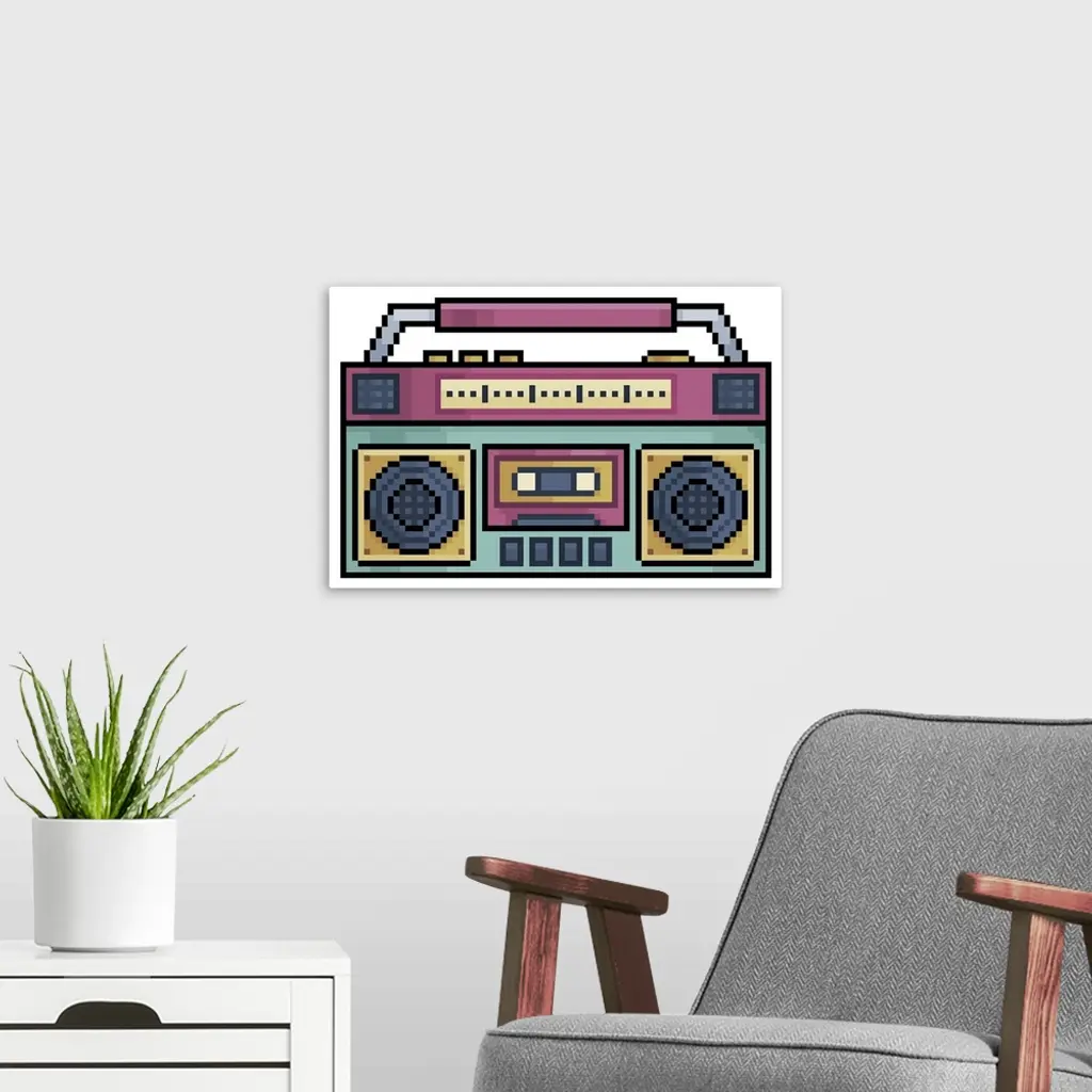 Pixel art. Old radio the 80s icon on white background. Originally a vector artwork.