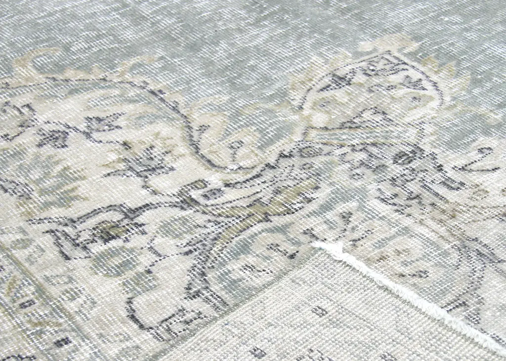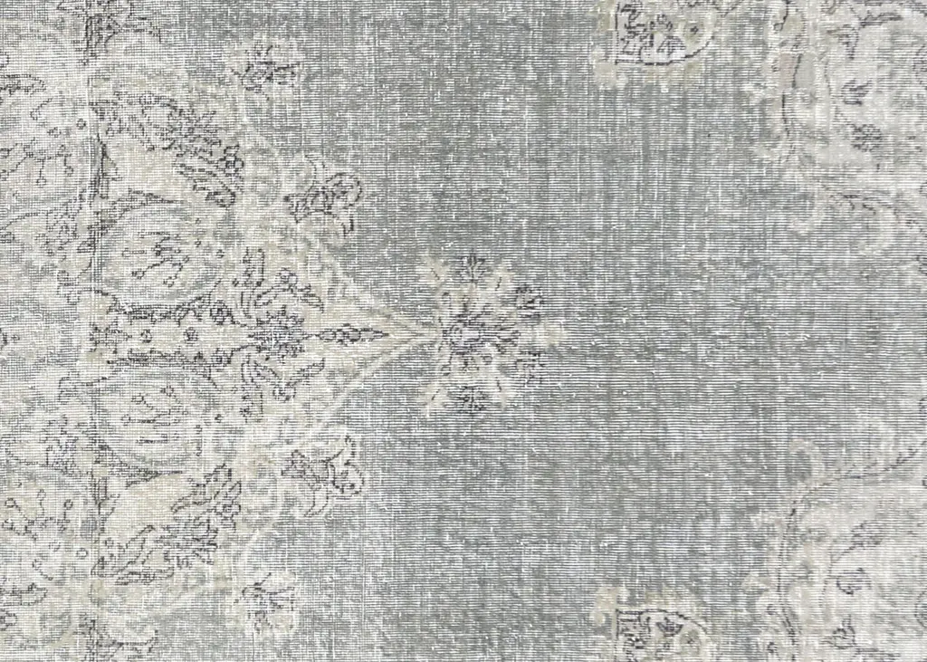 1960s Vintage Turkish Oushak Carpet. Hand woven with wool on wool foundation in the Oushak region of Western Turkey. The Anatolian plateau is where the weaving of oriental carpets originated. Rich in tradition and pride, each of the villages of the area produced a certain design and colors that the neighbors rarely copied. These Antiques were largely illustrated in historical European painting. Their bold geometrical designs and soft colors made them favorites of interior designers.