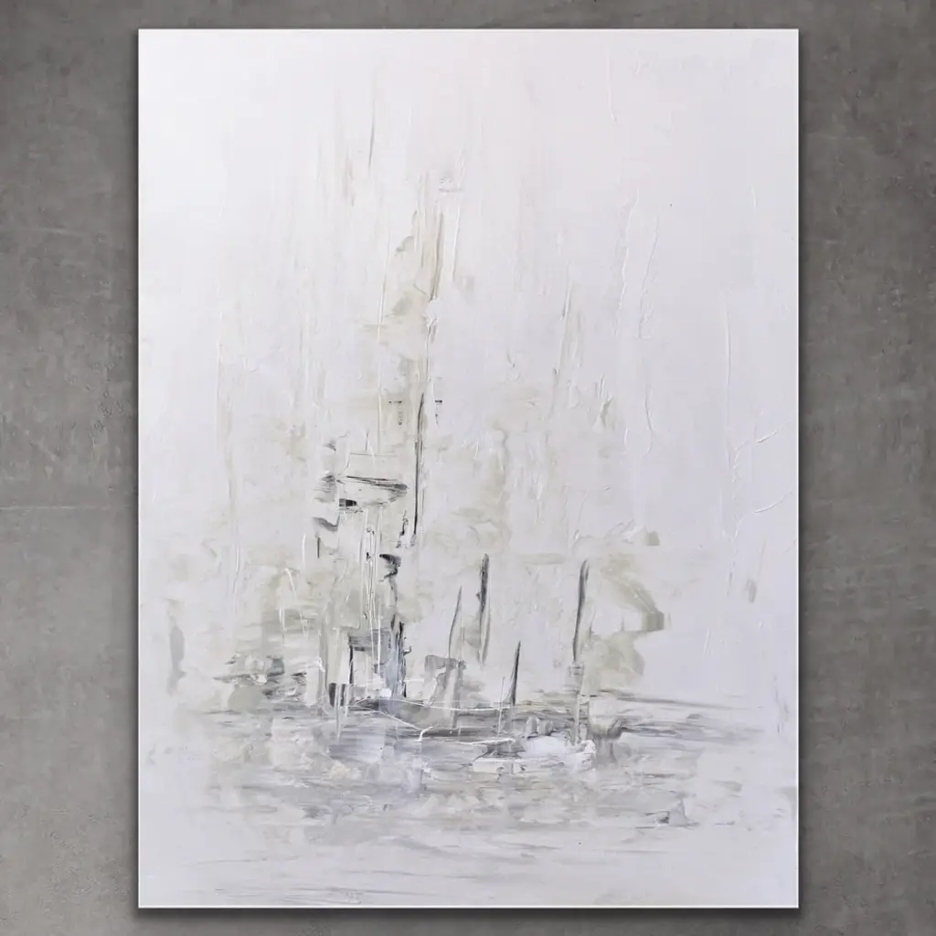84x60 Inches Minimal White Gray Abstract Original Large Wall Art Wall Art Decor