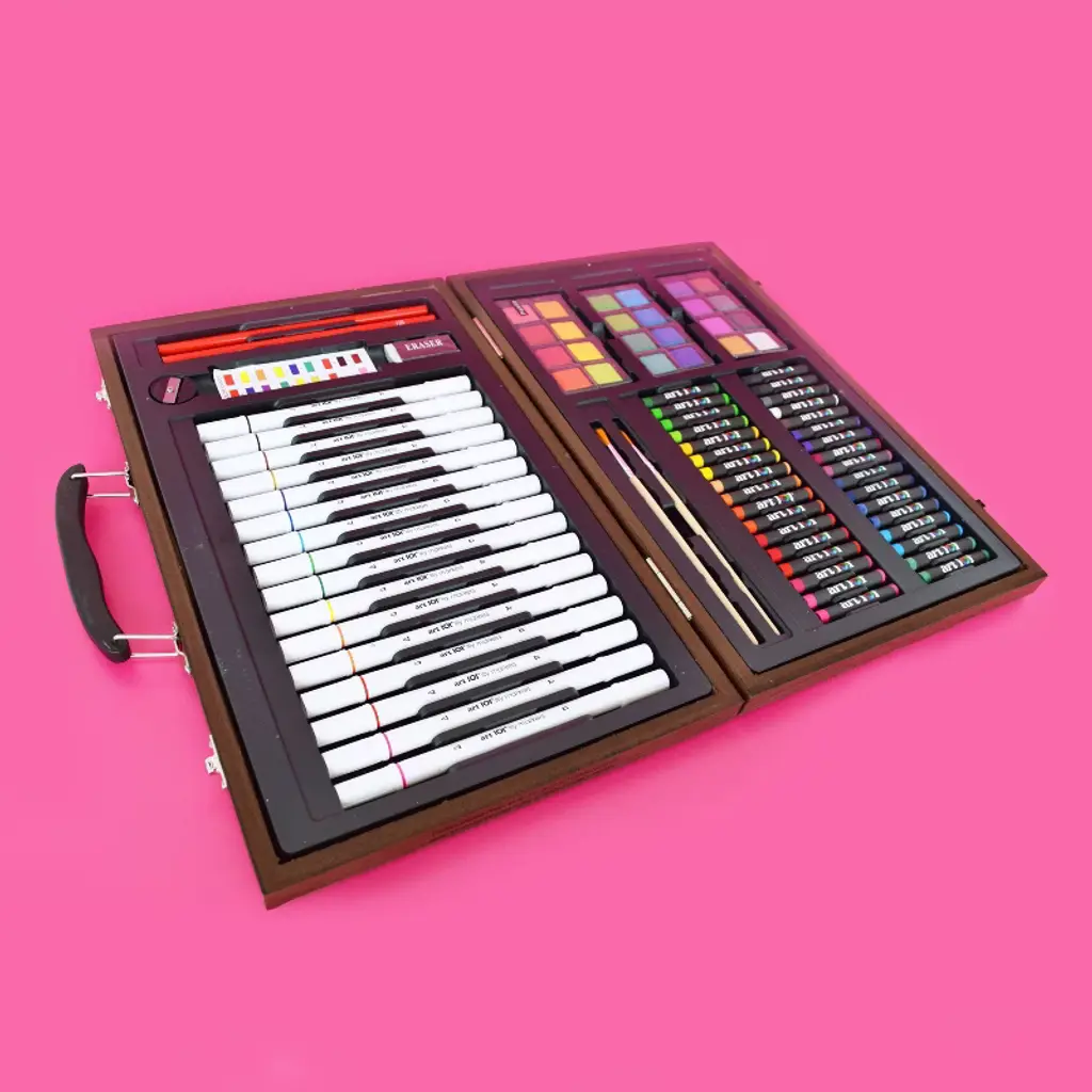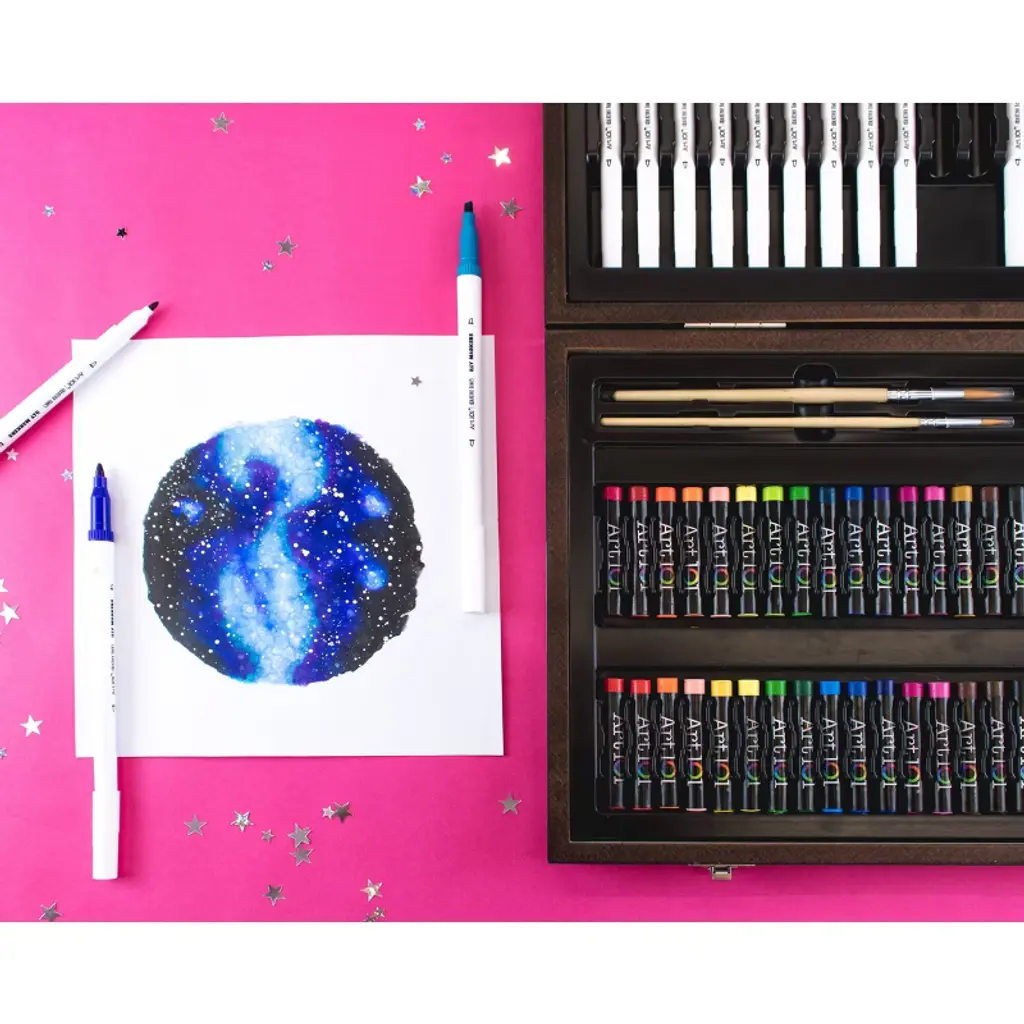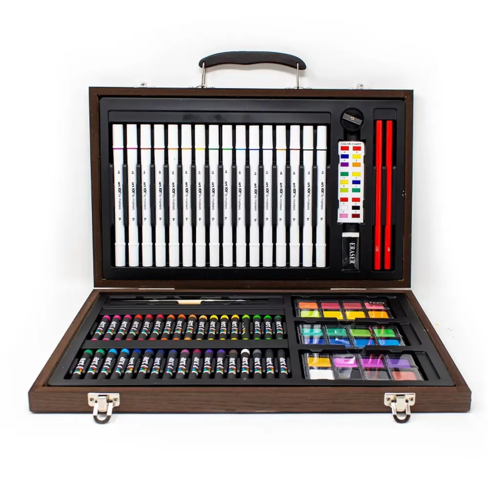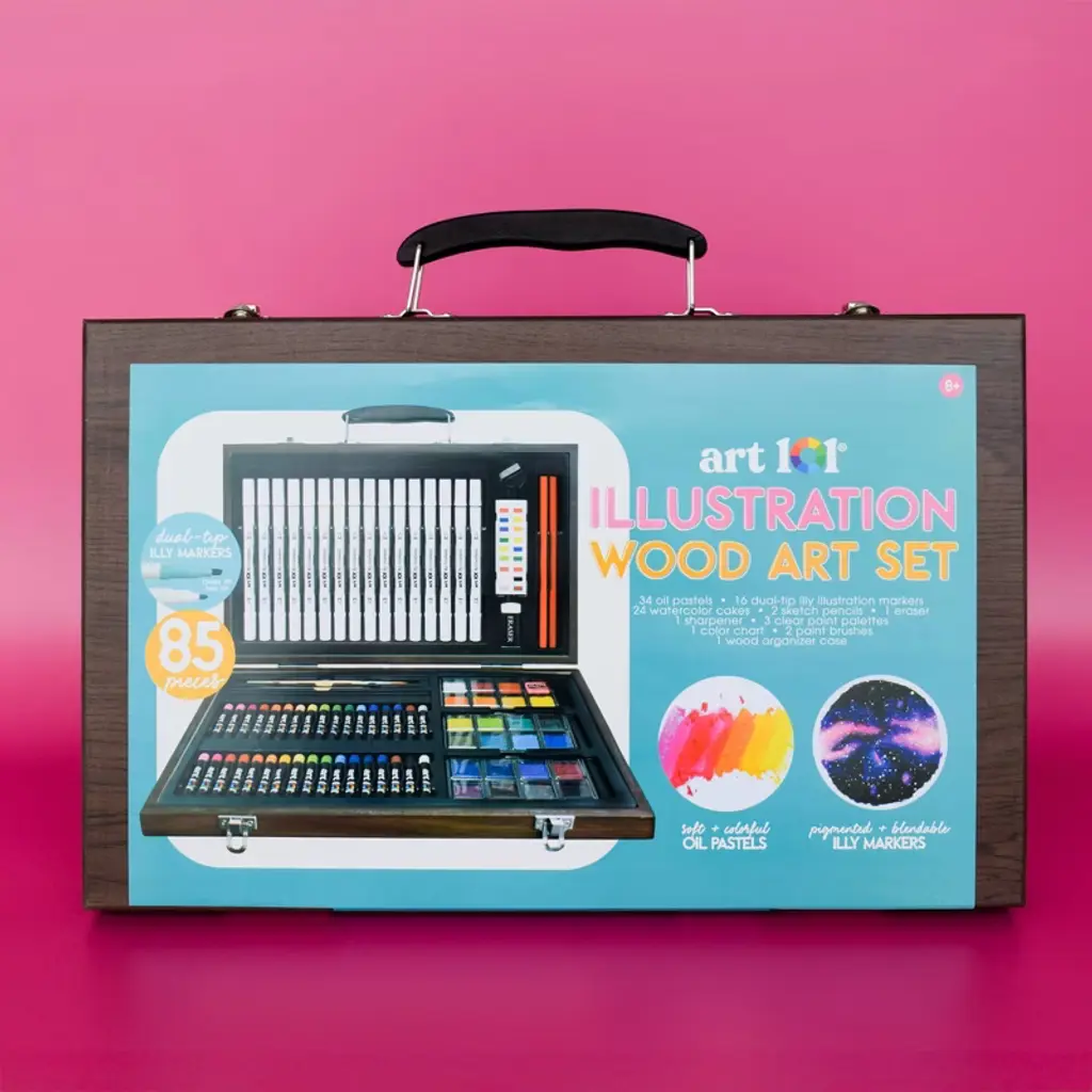 85pc Multimedia Illustration Art Set In Wood Case - Art 101: Drawing & Coloring Kit For Kids With Markers, Paint & Crayons