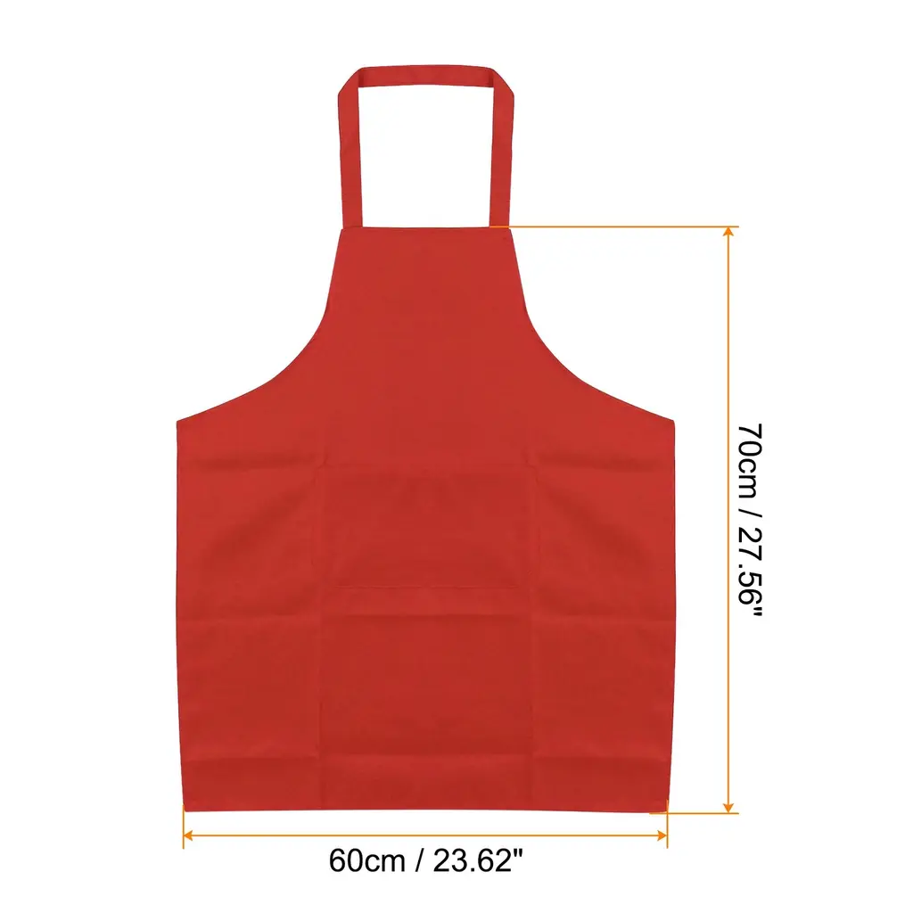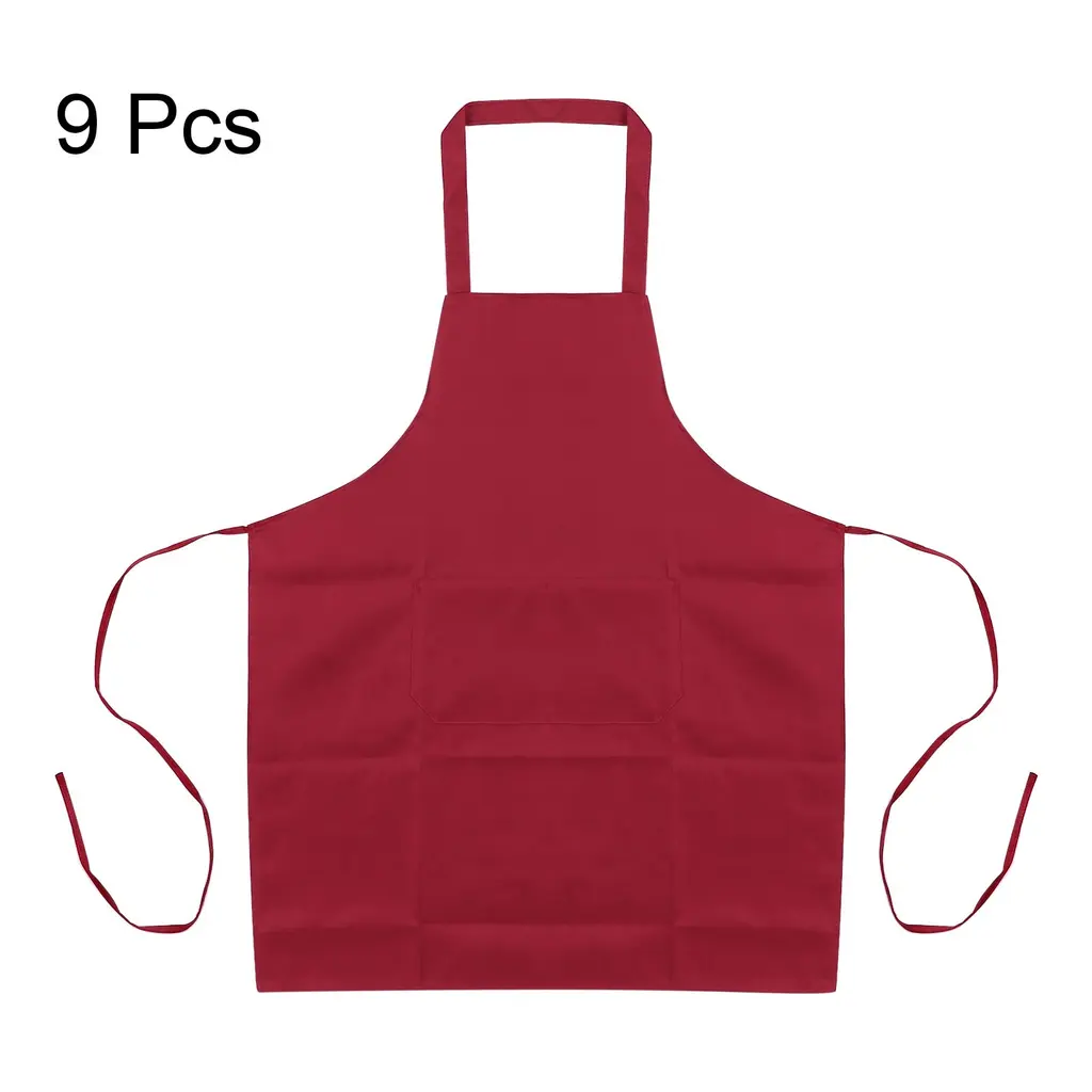 9Pcs Plain Bib Aprons Washable Aprons Kitchen Cooking Aprons - 70cmx60cm - Bright Red