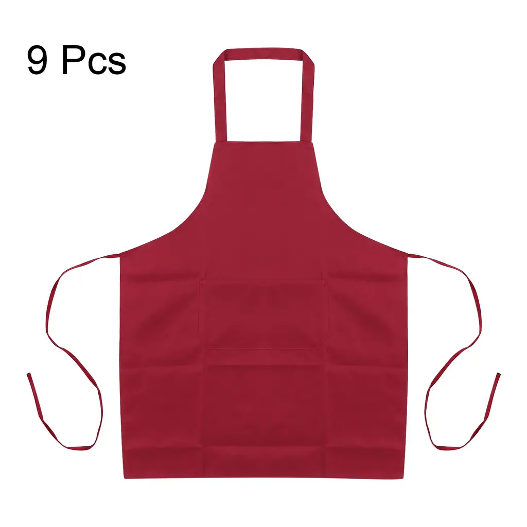 9Pcs Plain Bib Aprons Washable Aprons Kitchen Cooking Aprons - 70cmx60cm - Orange