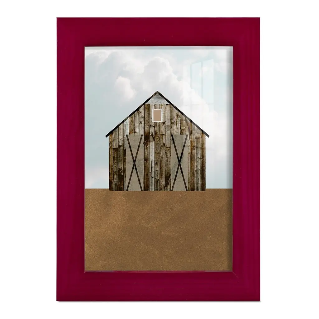A Barn's Portrait Iii -Framed Print W/glass-Cherry Red - 4X6 - Blue