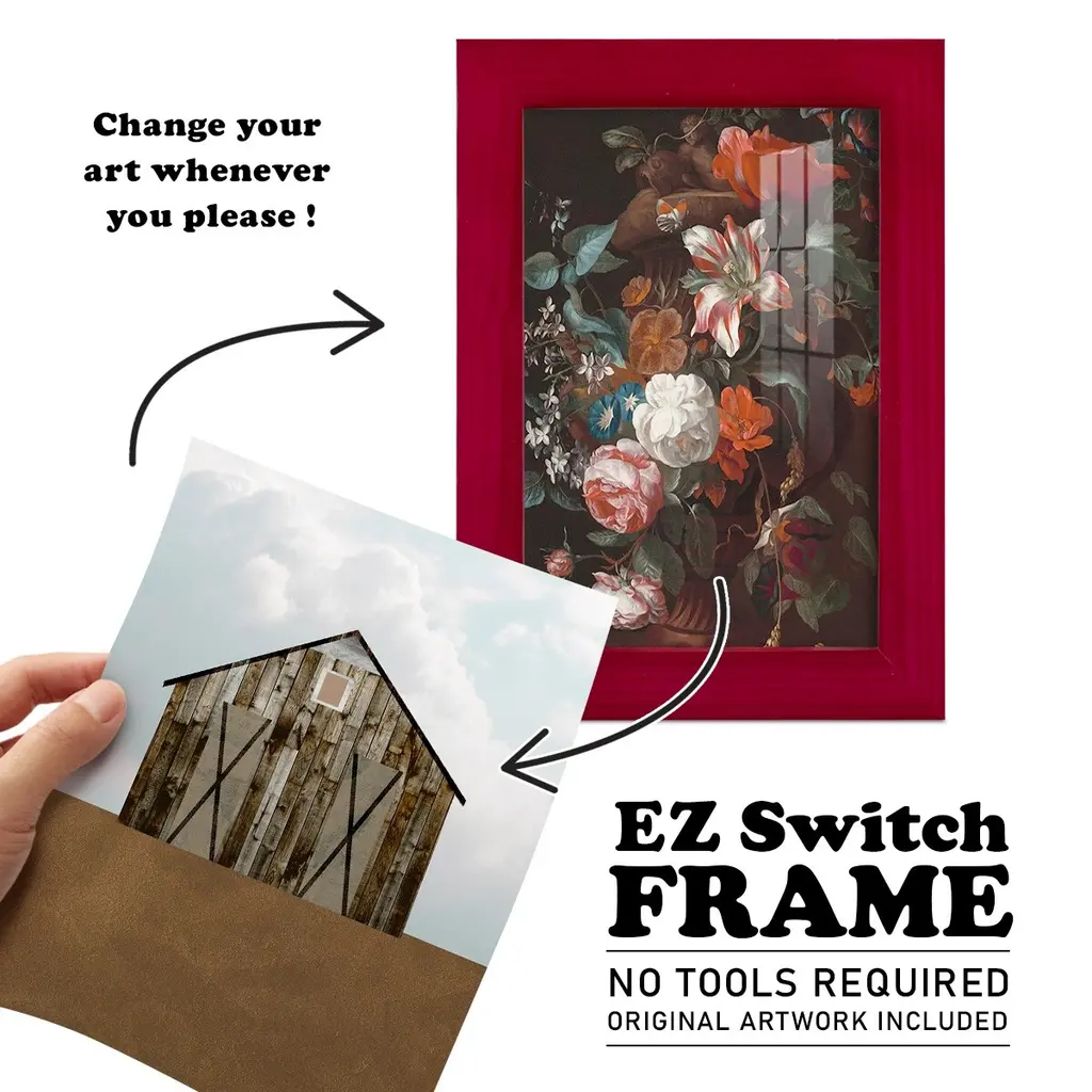A Barn's Portrait III -EZ SWITCH Framed Print w/glass-Cherry Red A delightful, framed print. Featuring a solid wood frame with real wood glass. This premium print is giclee quality. In addition, every frame features a removable back and table top stand. This allows you to change your art in the future or to just stand the art on a table for a new look. We are sure you'll enjoy our new series of EZ SWITCH Framed Art. Solid Wood Frame Real Glass Removable / Replaceable Art Built in Tabletop Stand Sizes range from 4x6 up to 12x15 - buy just one or pair them up as sets as you see fit.