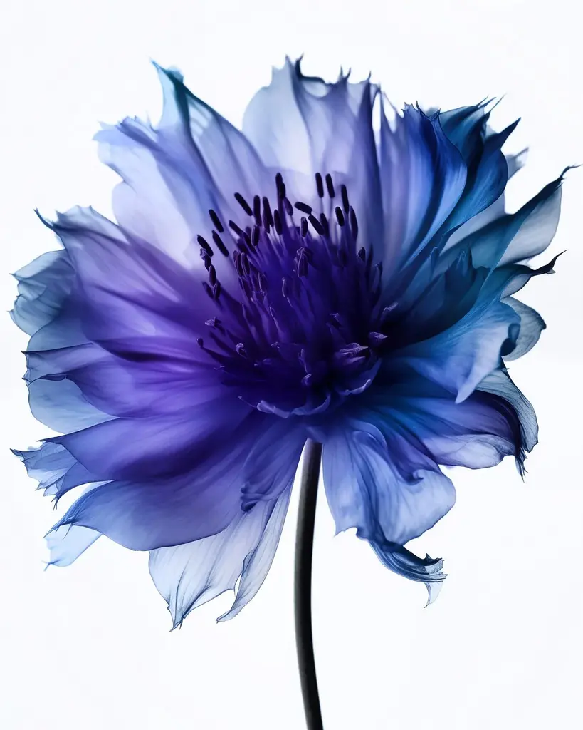 A color photograph of a blue and purple flower. Printed on 300gsm Archival Fine Art Paper.