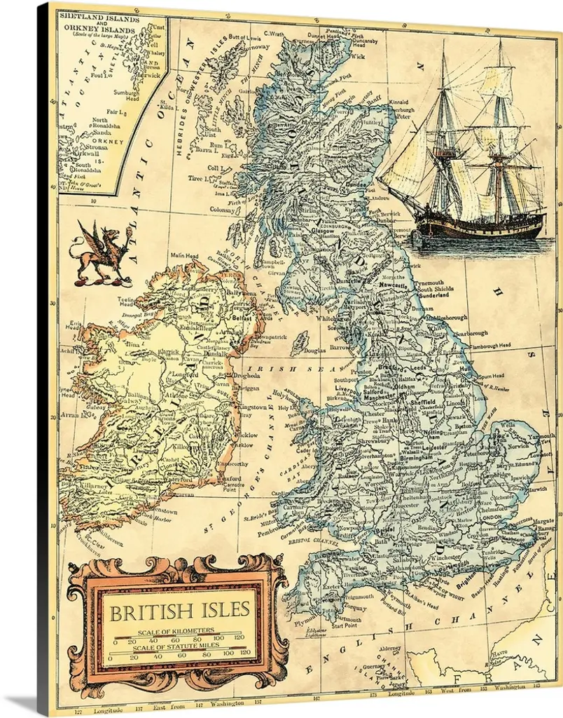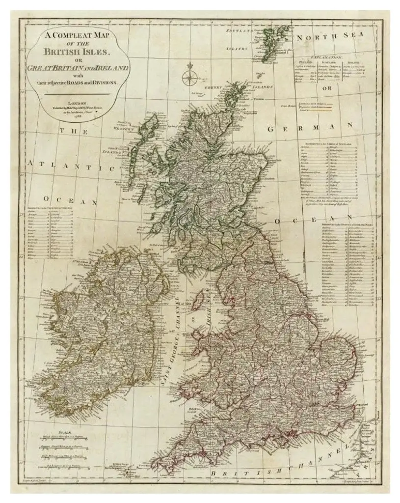 "A Complete Map Of The British Isles, 1788" Print By Thomas Kitchin, 32"x42"