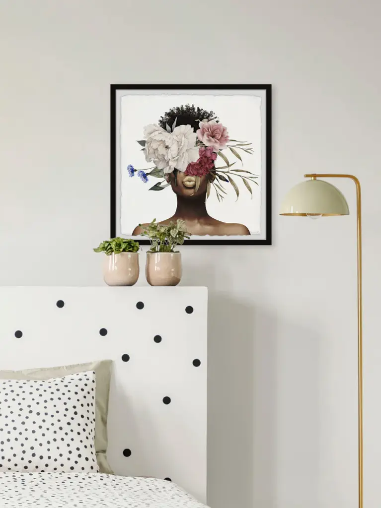 Celebrate springtime with this photographic print that features an up-close profile of a beautiful woman with flowers overlapping her face. Proudly printed in the USA, this piece is printed on high quality archive paper and professionally hand-framed. With wall-mounting hooks included, this artful accent is ready to hang up as soon as it reaches your front door.- Top quality Giclee print on high resolution Archive Paper- Hand cut deckled edges- High quality durable non-warping frame- Finished under shatter resistant plexiglass- Arrives ready to hang- Includes a certificate of authenticity- Printed in the USA