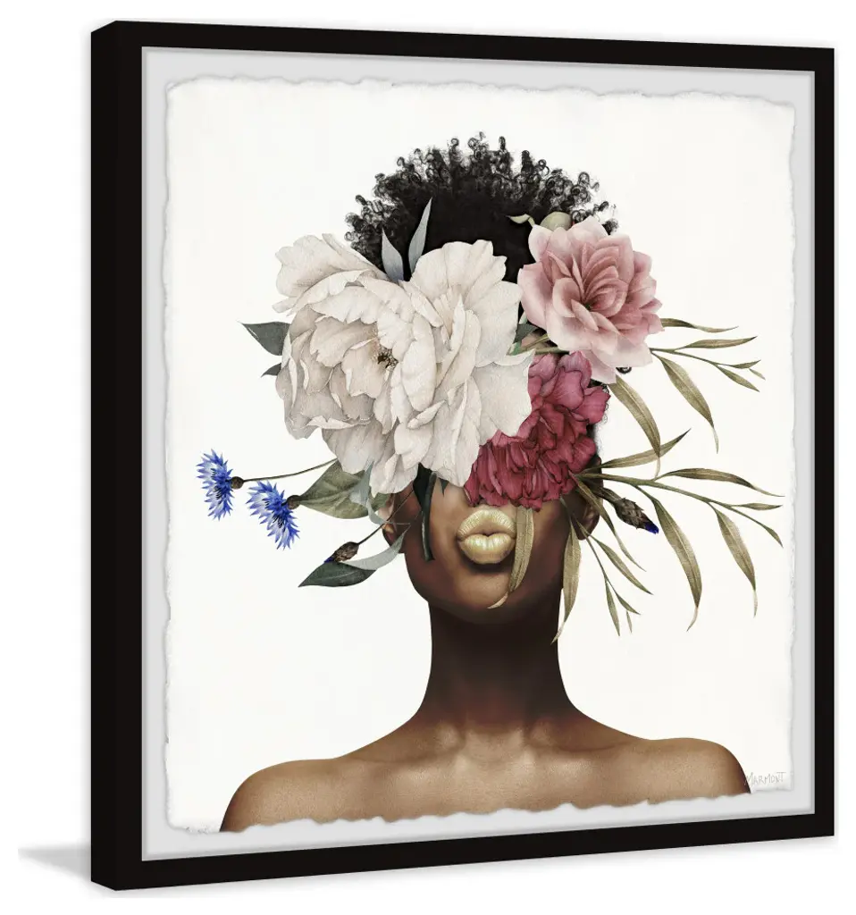Celebrate springtime with this photographic print that features an up-close profile of a beautiful woman with flowers overlapping her face. Proudly printed in the USA, this piece is printed on high quality archive paper and professionally hand-framed. With wall-mounting hooks included, this artful accent is ready to hang up as soon as it reaches your front door.- Top quality Giclee print on high resolution Archive Paper- Hand cut deckled edges- High quality durable non-warping frame- Finished under shatter resistant plexiglass- Arrives ready to hang- Includes a certificate of authenticity- Printed in the USA