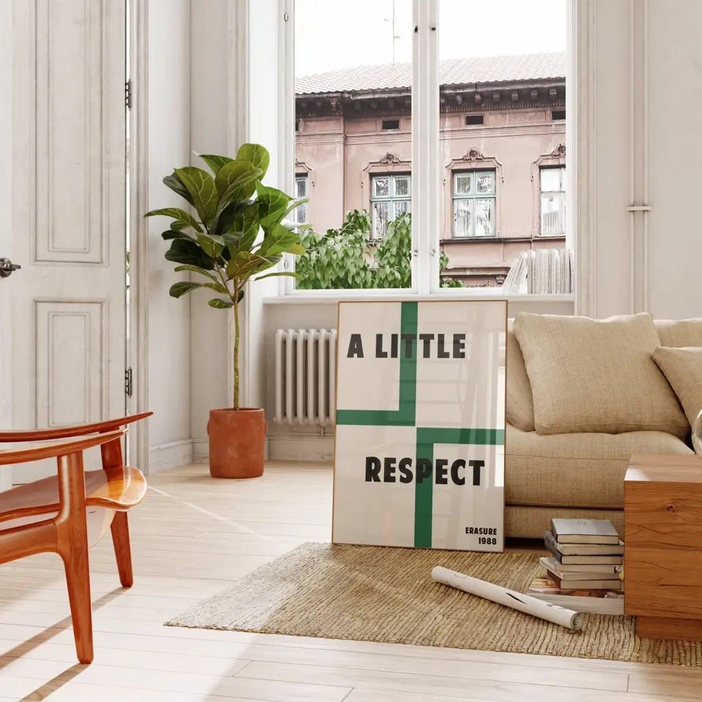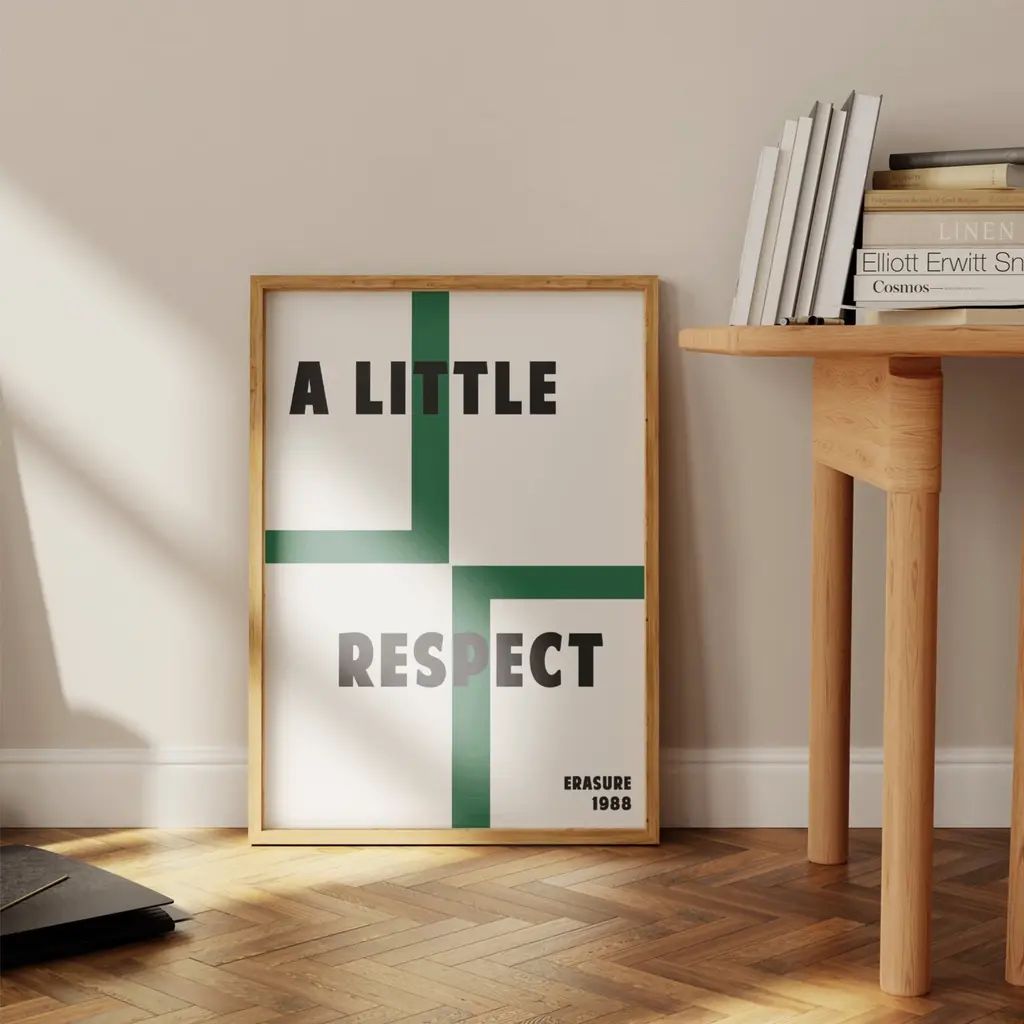 A Little Respect music print. Inspired by the 80s iconic hit by Erasure. Influenced by simplicity and retro bold lines this art print is sure to give you that nostalgic feeling. The perfect retro inspired wall art, pair with plants and mid century teak for extra nostalgic soul.Giclée printed on Munken pure smooth cream paper which is certified by the Rainforest Alliance Program for FSC® Standards.