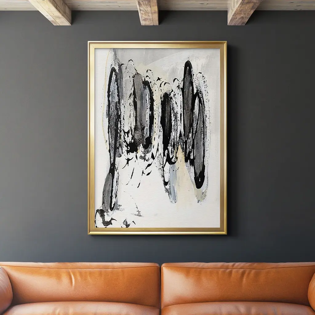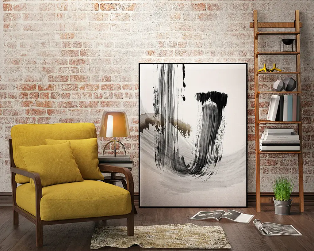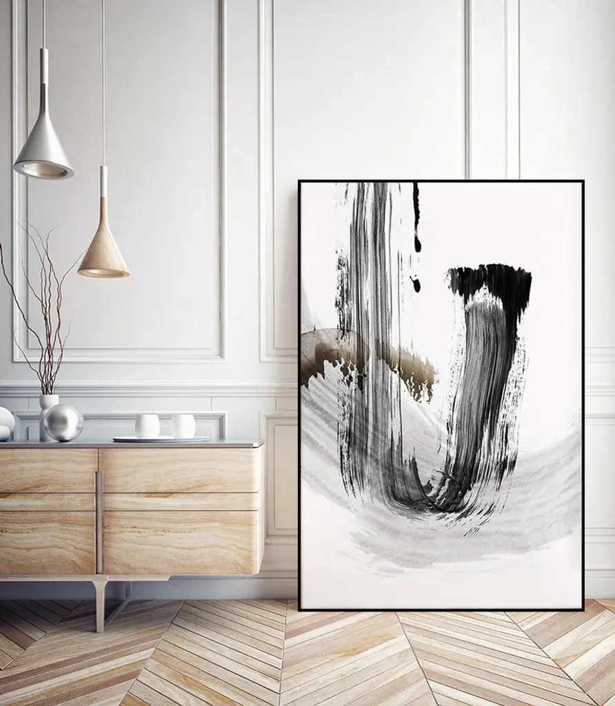 Your ready to hang artwork is printed on canvas then stretched and mounted to a 2-inch thick - hand stained black wood frame. Arrives at your door complete with an easy to use self-leveling hangking kit.