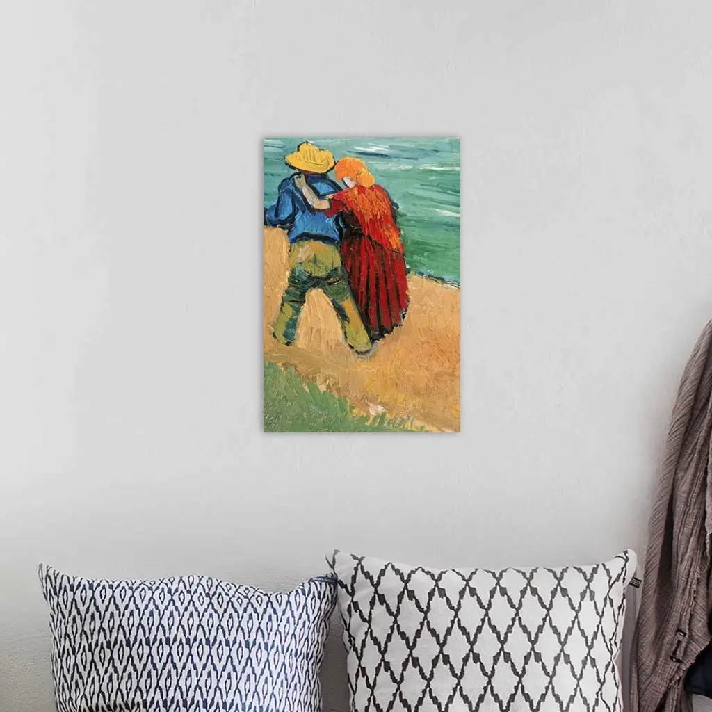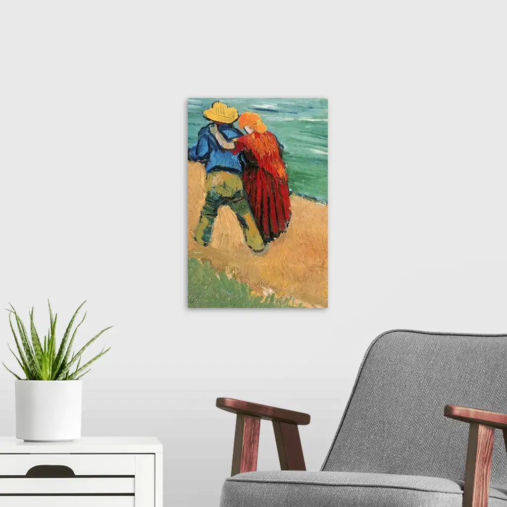 Post-Impressionist Van Gogh painting of a couple in love walking down a dirt path.