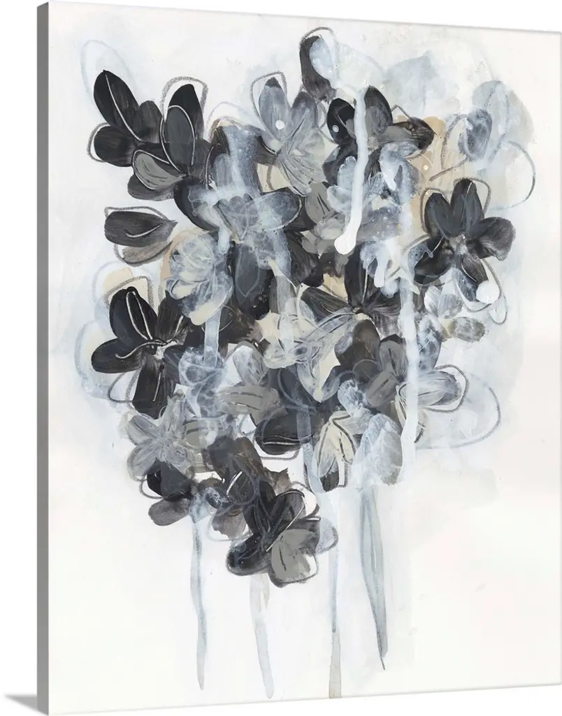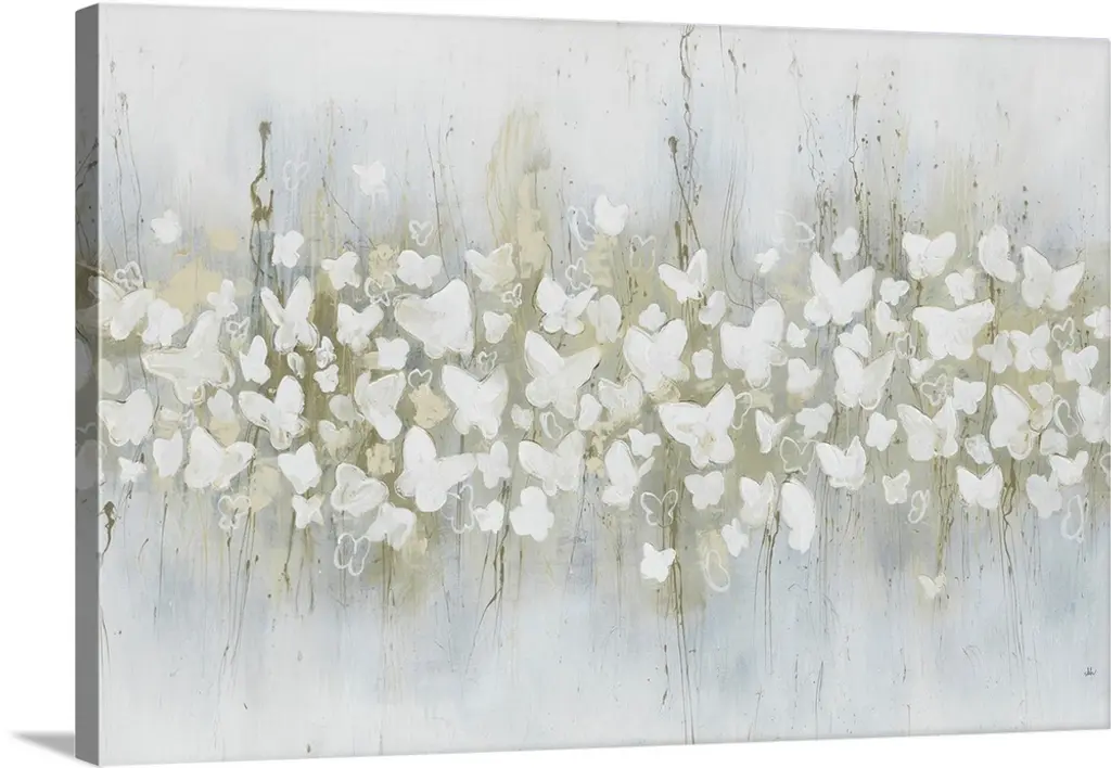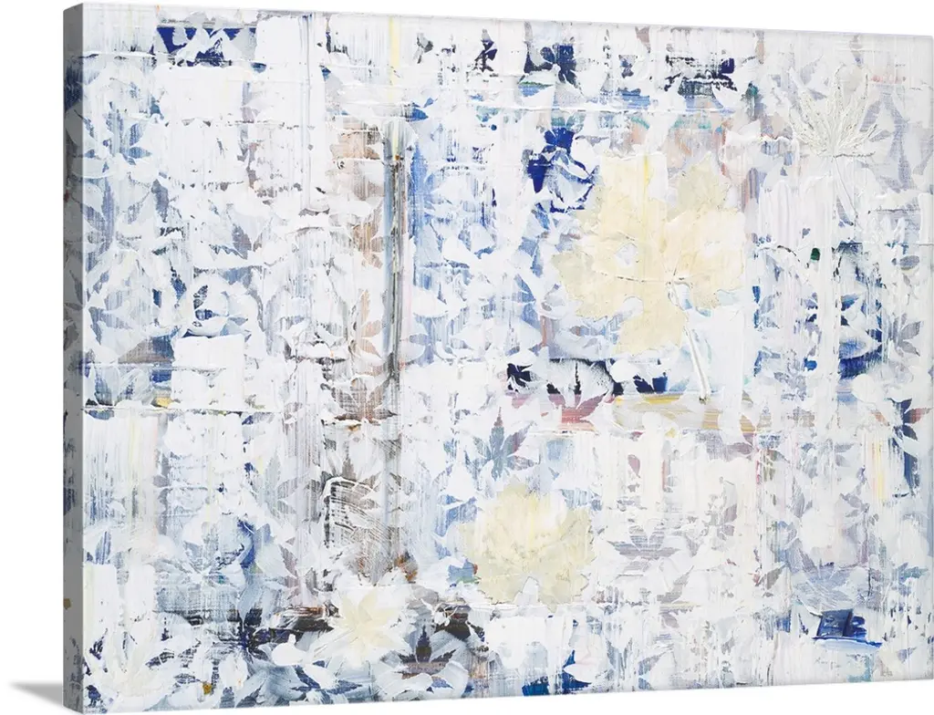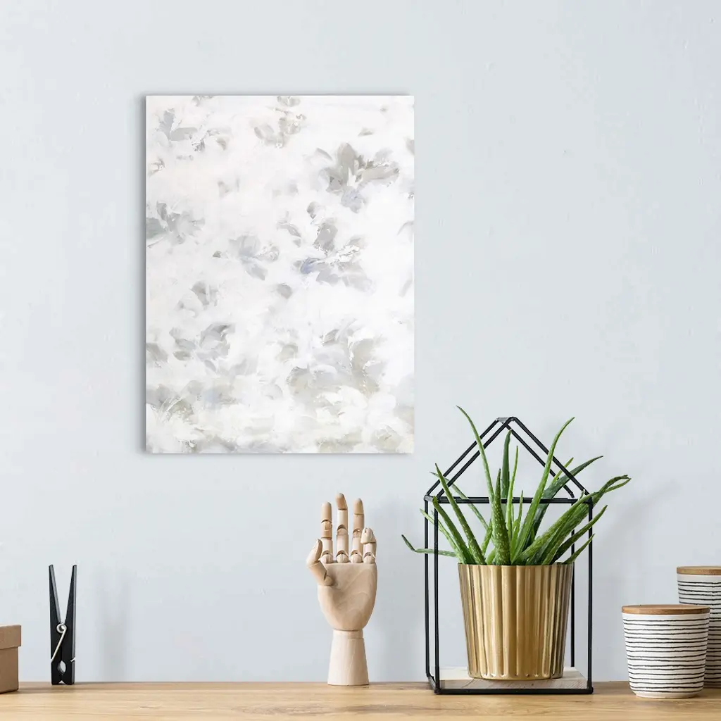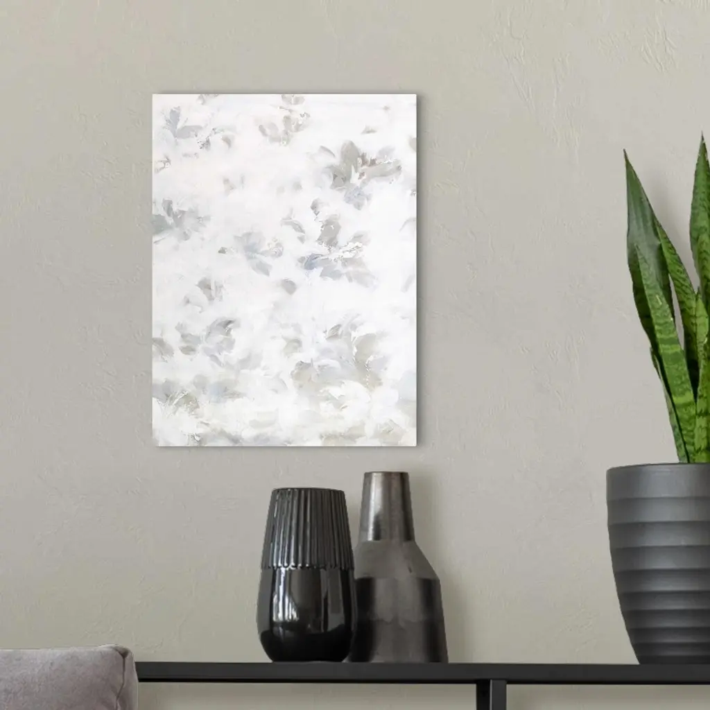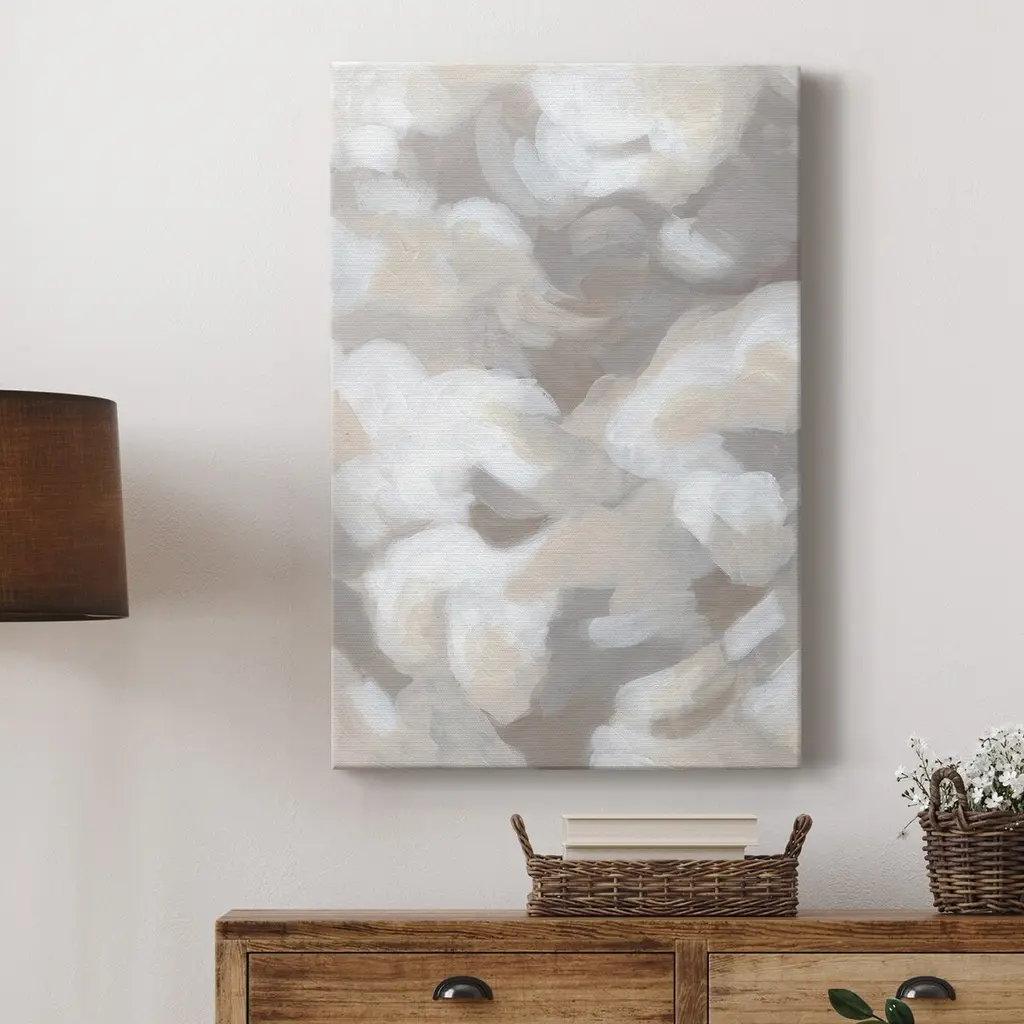 Contemporary abstract artwork in shades of white and grey, resembling a field of clouds.