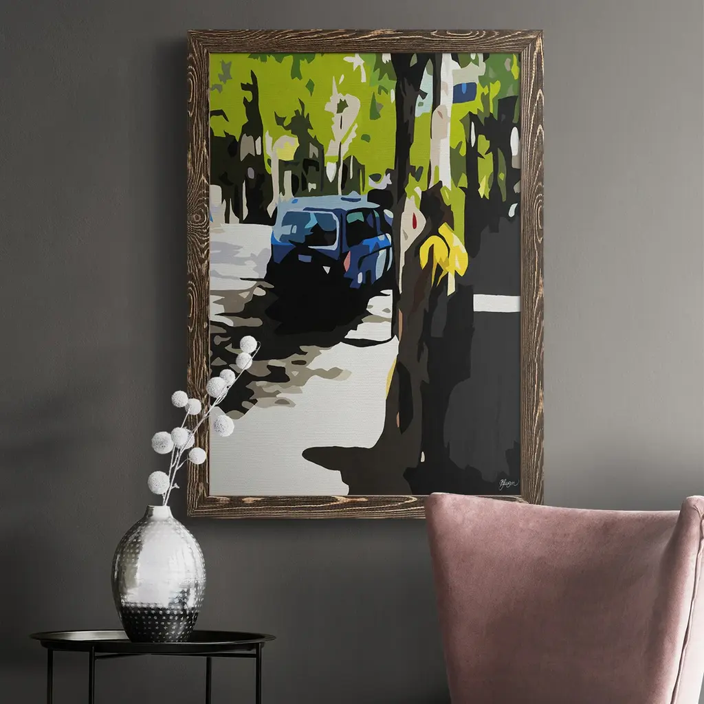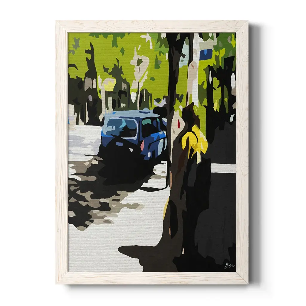A Volvo In Ballard-Premium Framed Canvas - Ready To Hang - 27.5x37.5 - White