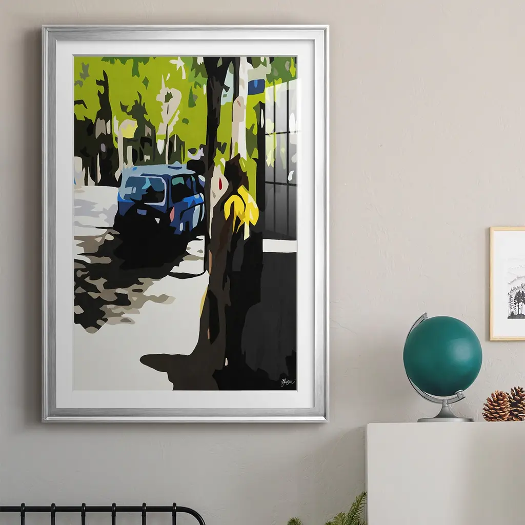 A Volvo in Ballard Premium Framed Print - Ready to Hang A Premium Framed Print created to last. Framed in distressed wood and available in an array of sizes and colors Featuring a beveled a solid wood stretcher bar, each piece comes ready to hand 4 SIZES AVAILABLE 30.5''X42.5'' - Overall Size 26.5'X36.5'' - Overall Size 22.5''x30.5'' - Overall Size 18.5''x24.5'' - Overall Size Each piece is made to order. Each piece comes with hanging hardware. Made in the USA Ready to Hang Giclee Paper Print Acrylic Glass Beveled Matt Board