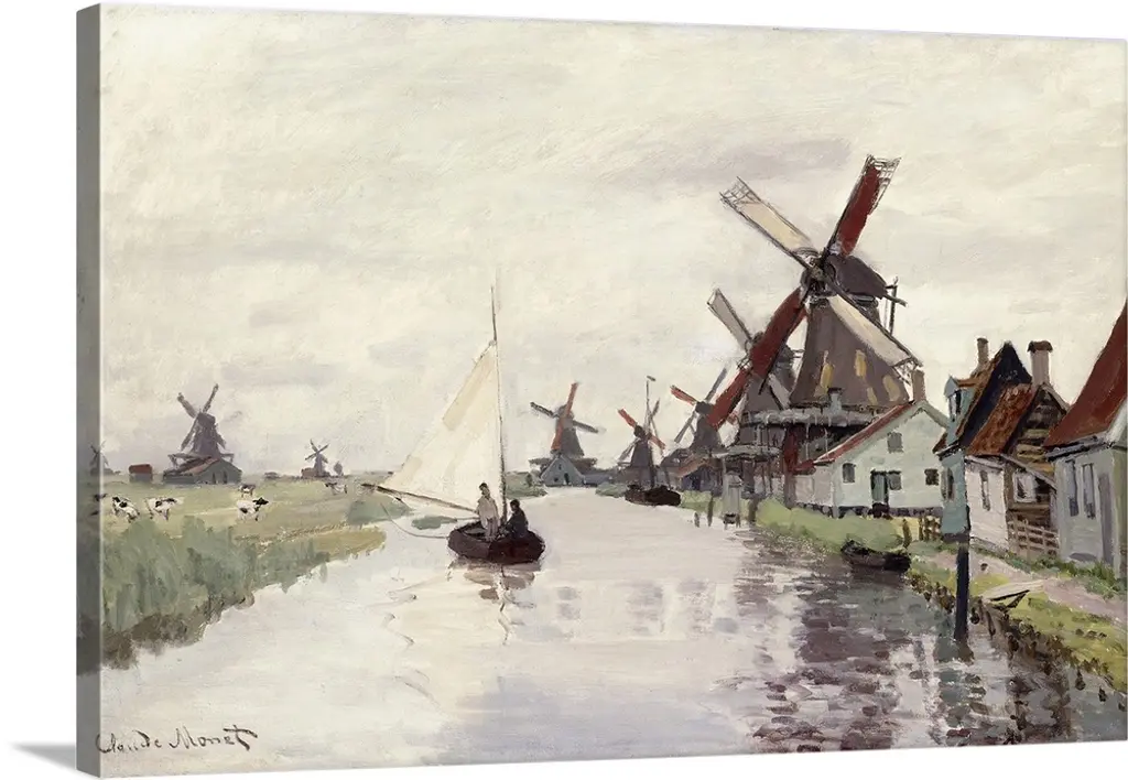 A Windmill on a Polder Waterway, known as "In the Month of July", by Paul Gabriel, c. 1889, Dutch painting, oil on canvas. Gabriel painted this summer landscape with bright, saturated color.
