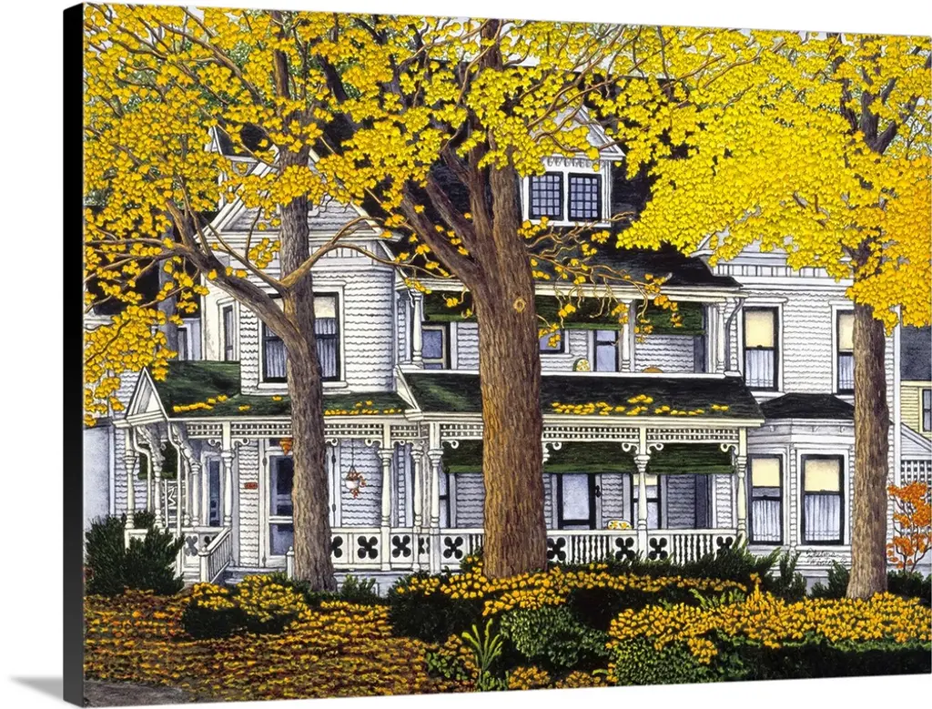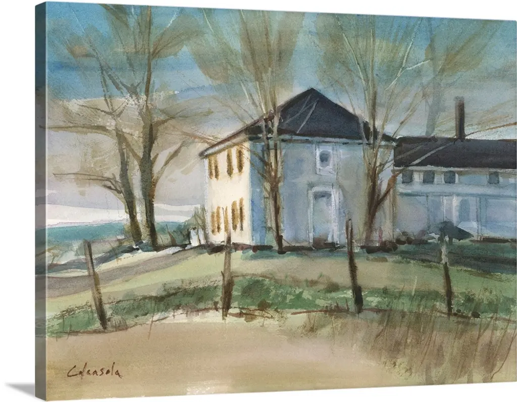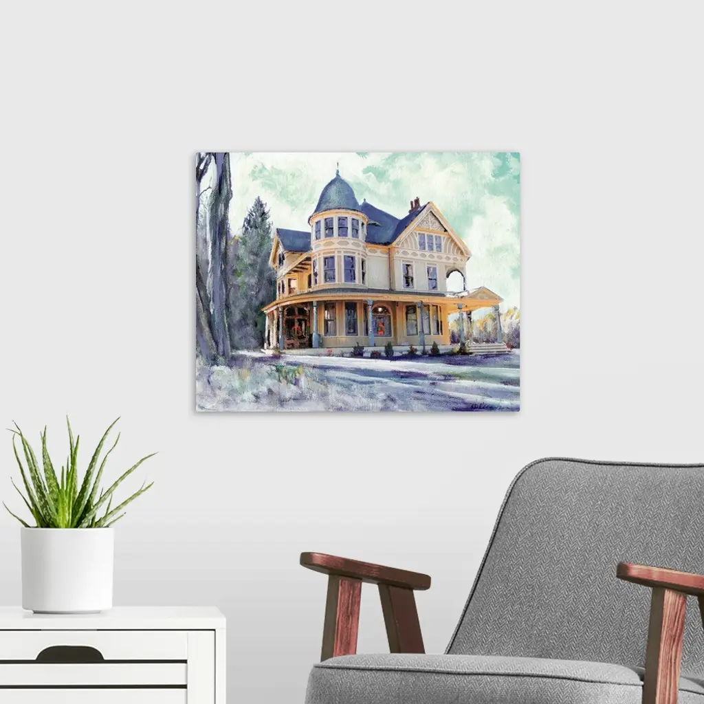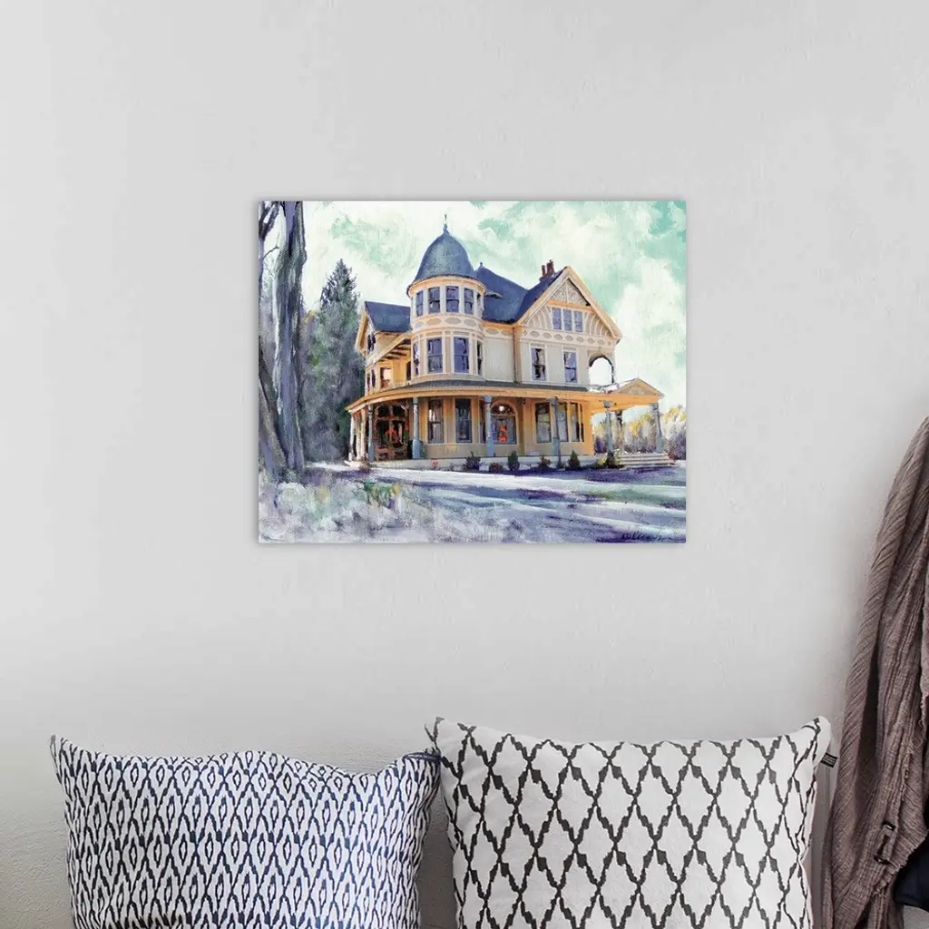 Contemporary painting of a Winter Morning in Connecticut- This Victorian house is in the town of Bethel, CT.