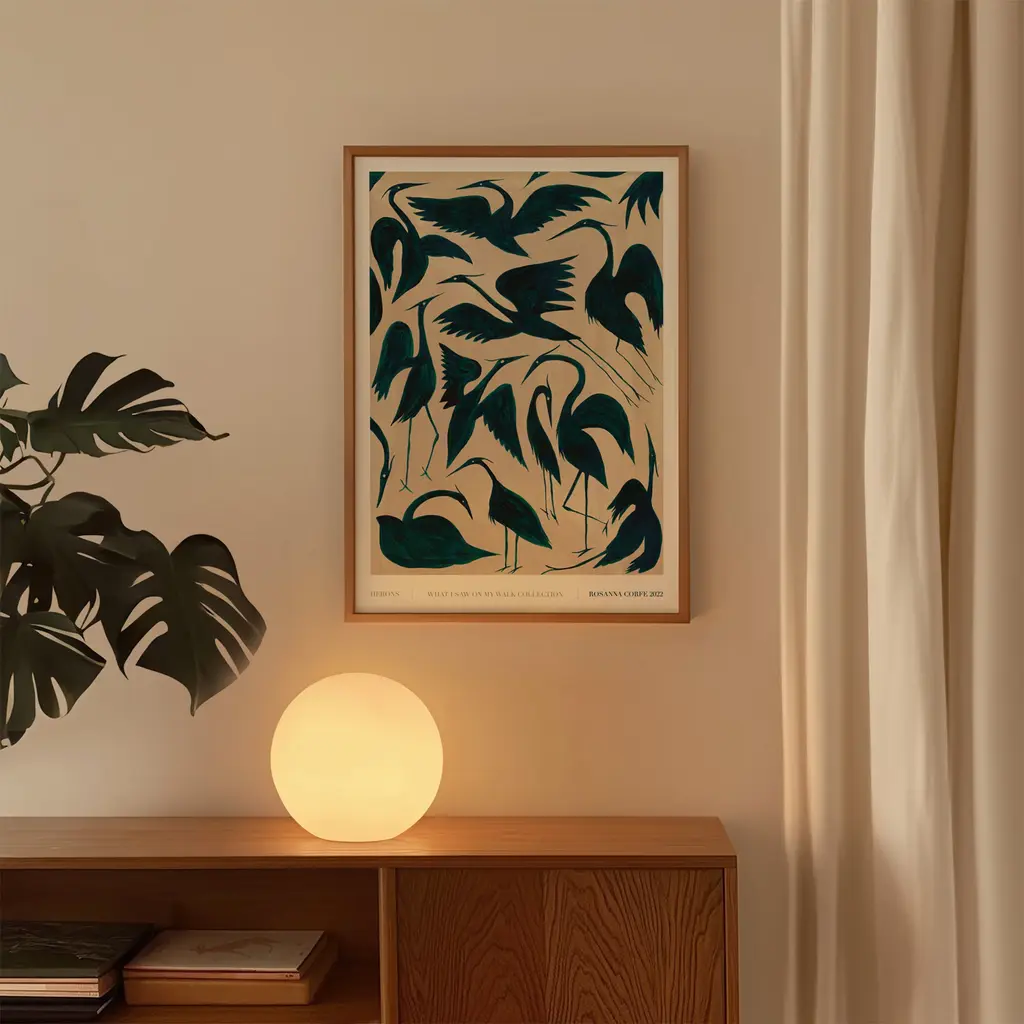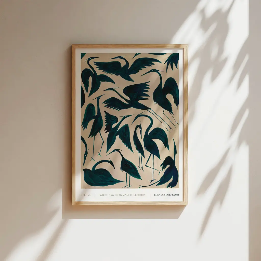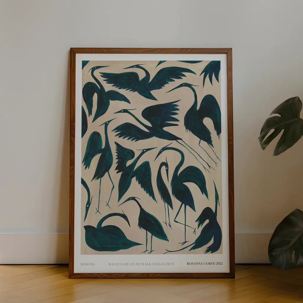 Rosanna Corfe is excited to introduce one of her favourites designs now as a fine art print. Originally created in gouache paint, this Heron wall print is inspired by Rosanna's lockdown walks and some friendly herons from her local park. This striking, unique artwork is the perfect way to introduce some subtle pattern and colour into your home.