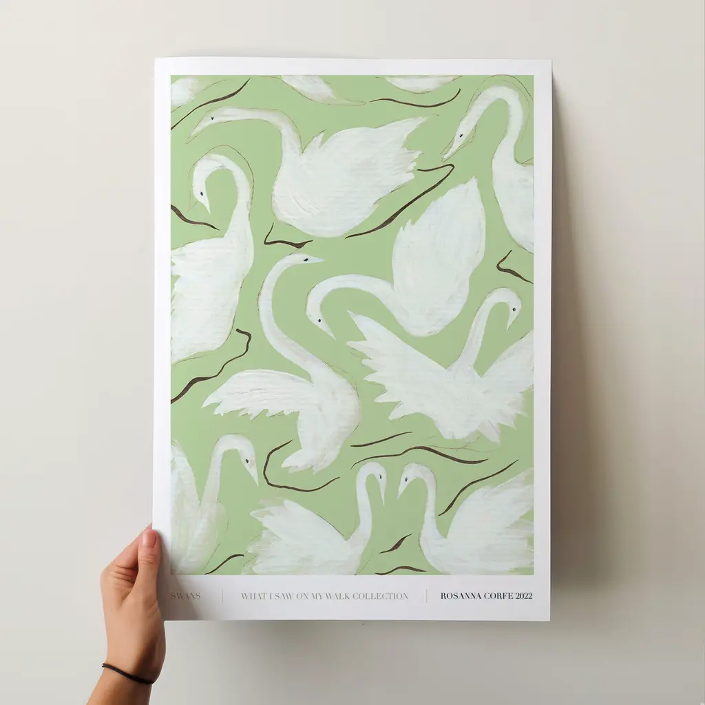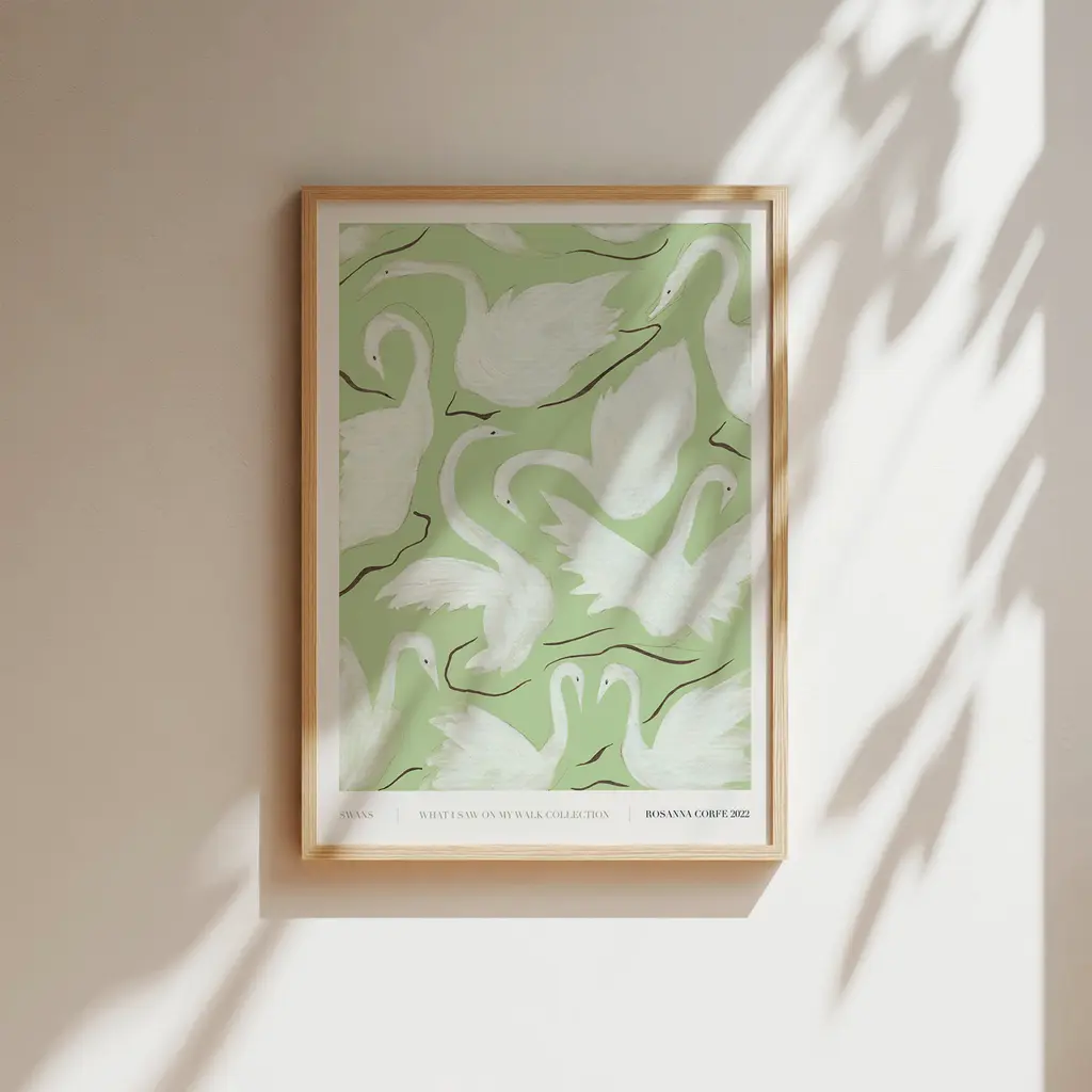 Originally painted in ink and gouache, this fine art wall print wonderfully replicates the painterly brushstrokes and textures of Rosanna Corfe's original bird artwork.Featuring a pastel green colour palette, this print is an excellent way to introduce some subtle colour and pattern onto you wall.