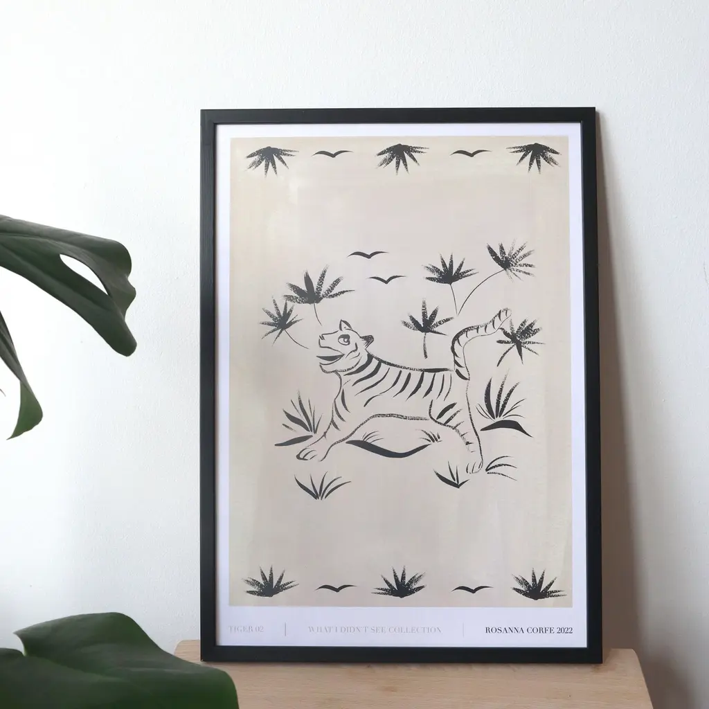 A fun tiger animal print in a neutral colour palette, perfect for those looking for an interesting artwork that will work well within their neutral interior or just wanting to add a subtle yet unique piece of wall art. Printed in the UK onto a heavy matt 300gsm recycled paper.