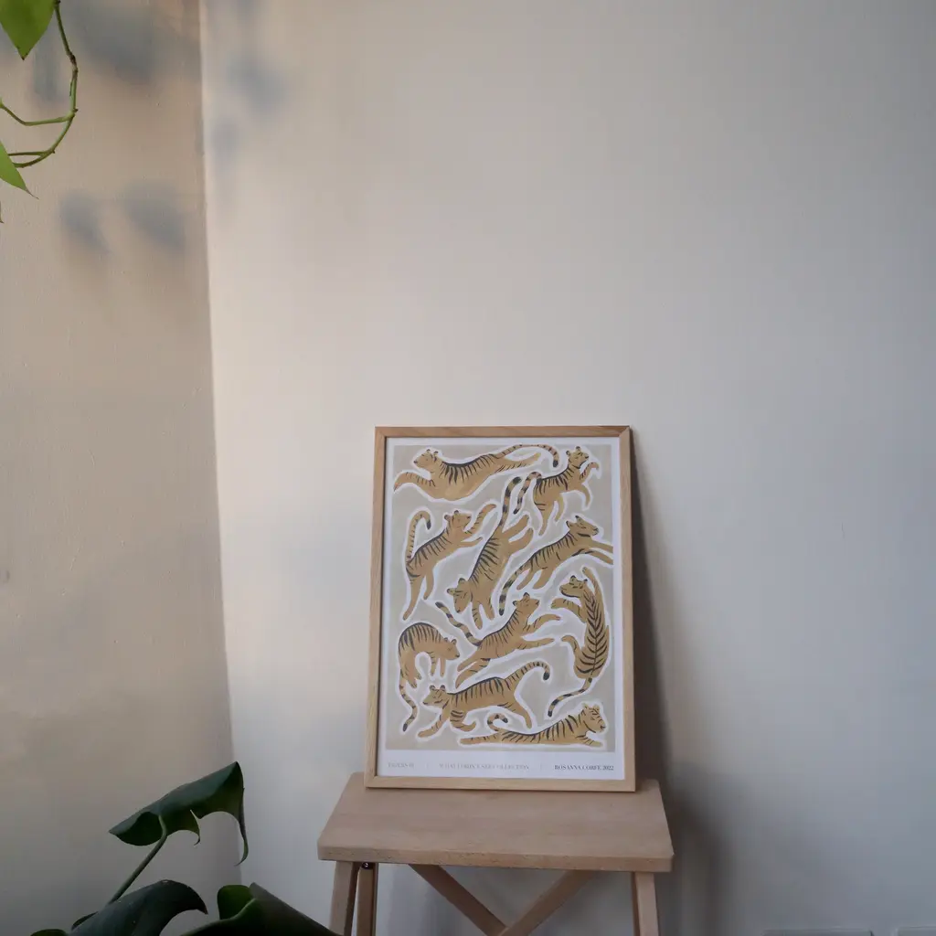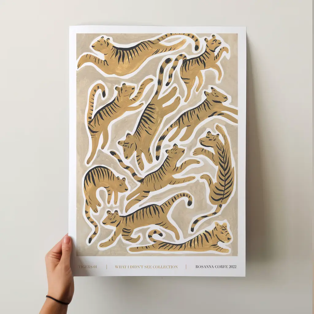 Rosanna Corfe is excited to introduce her fun new tiger print from her new Spring collection inspired by feelings of wanderlust. This playful print in soft yellows in the perfect way to introduce some pattern and colour into your home. Printed in the UK onto heavy 300gsm recycled paper.