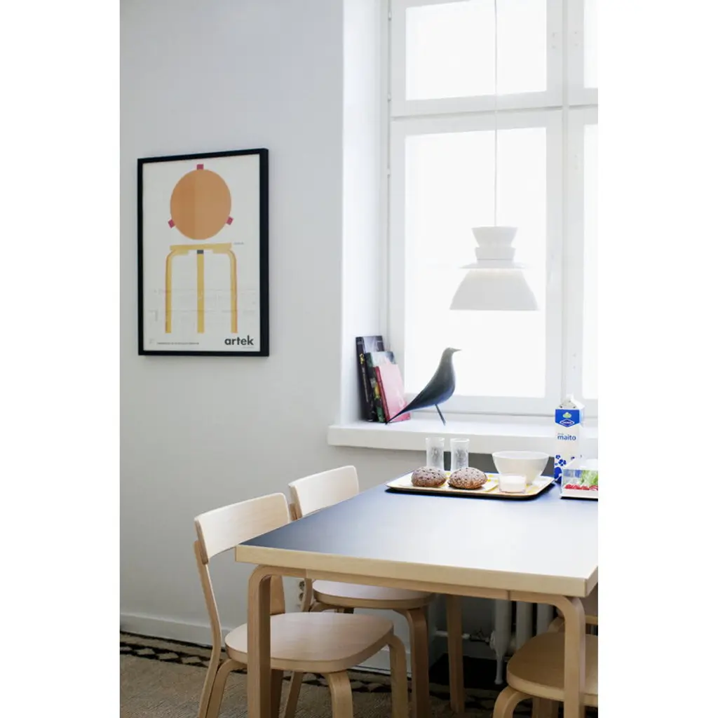 Bring a piece of iconic design to your home. The Artek poster titled Aalto Chronology presents one of the furniture classics designed by Alvar Aalto from above and from the side, the iconic Stool 60. The three-legged stool was introduced for the first time in 1933 and immediately became a sensation in the design world. In addition to the iconic stool, the poster features a graphic chronology of Alvar Aalto's designs.