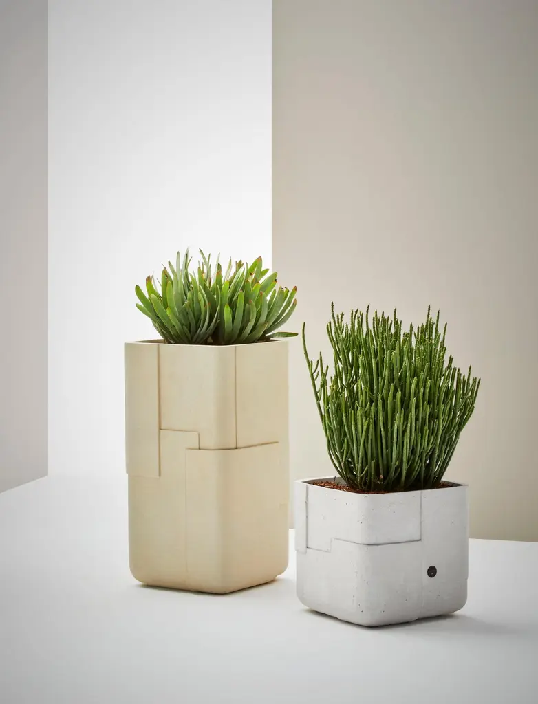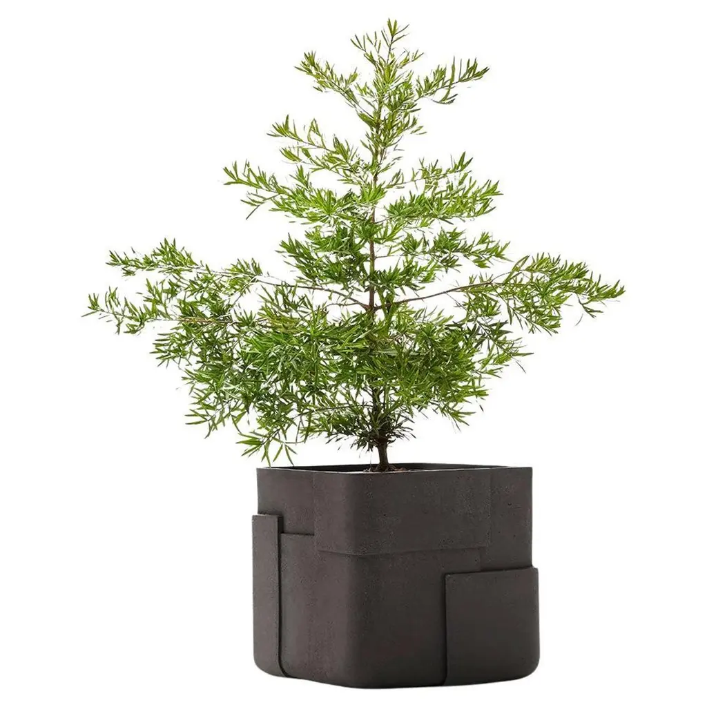 Aarde Square XS Black Planter by IndigenusDesigned by Sebastian HerknerDimensions: W 43 x H 43 cm.Materials: Stone.Weight: 30 kg.Different colors and sizes are available. Please contact us.Following his honeymoon to South Africa, German designer, Sebastian Herkner, was inspired by all the aspects, elements and shades he encountered across so many areas. The Aarde (which means earth) is a representation of this; of the layering that exists culturally, demographically and in the nature and light of Africa. The Aarde has subtly overlapping layers with different depths to create the play with light and minerality that Sebastian saw in the natural landscape and wanted to represent. The earthy colours (brown, red, sandstone) used in this range are very much part of the story Sebastian wanted to communicate.Indigenus, founded in 2014, is the brainchild of Cape Town local, Peter van der Post. At the beginning of his career, whilst working in roto-moulding, Peter noticed a lack of high design planters in the market and the vision to produce the most beautiful, original, and desirable planters began to grow. Over the past 8 years, the Indigenus team has collaborated with South Africa’s top designers to create planters that are art pieces in their own right. 2022 has seen exciting collaborations further afield with internationally renowned designers and collaborators. In line with our sustainability and quality luxury objectives, we are constantly striving to make planters for life and not just for a few seasons. It has taken years of refinement, many valuable lessons learned and, ultimately, setting up our world-class factory for in-house manufacturing to be able to ensure that the planters are of the highest quality. All materials are sustainably sourced and the planters are made by hand. It is this craftsmanship that puts Indigenus in a league of its own. Each range of planters is unique and illustrates the impact that beautiful sculptural planters have on architecture and landscapes. The planters' close connection to the earth is expressed through a stable and grounded design, made with beautiful natural materials and evoking an underlying story of our relationship with the natural world.Indigenus is focused on collaboration with the world’s top designers and artists. We are committed to constant refinement and a willingness to be courageous, curious, and experimental with natural materials and new designs. We have built solid distributor networks and relationships that we are committed to maintaining and growing globally. We are proud of our roots as an African luxury brand with a global footprint.
