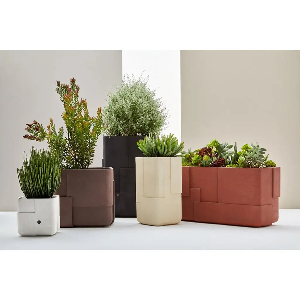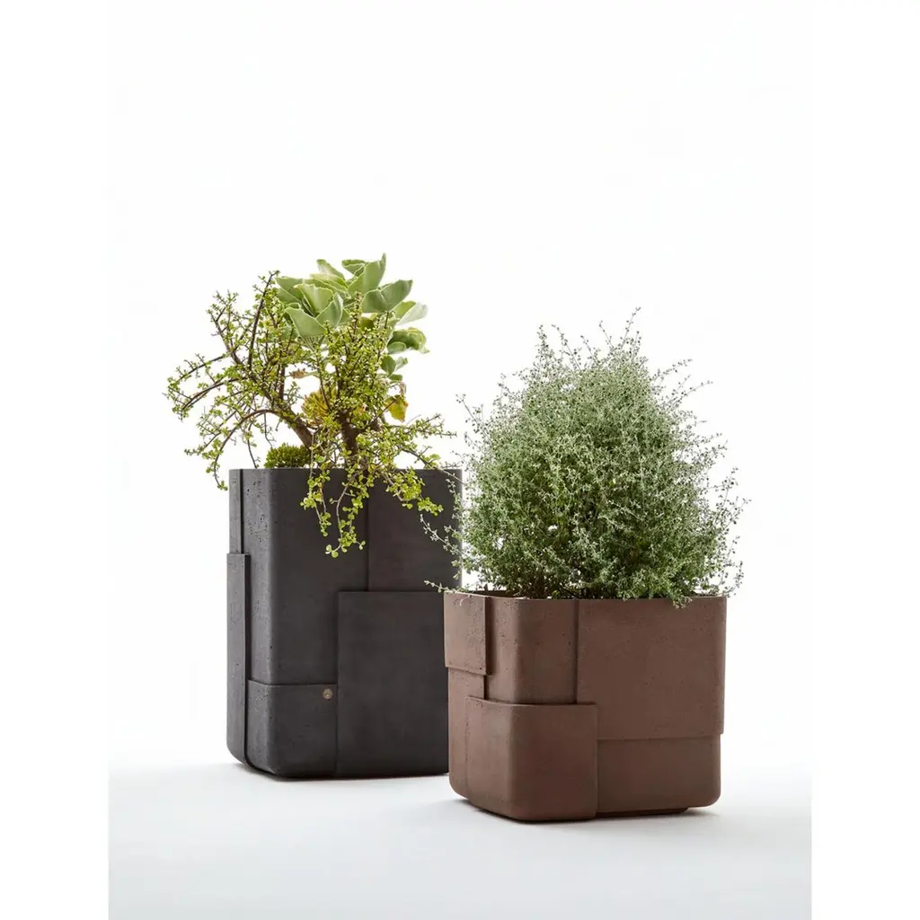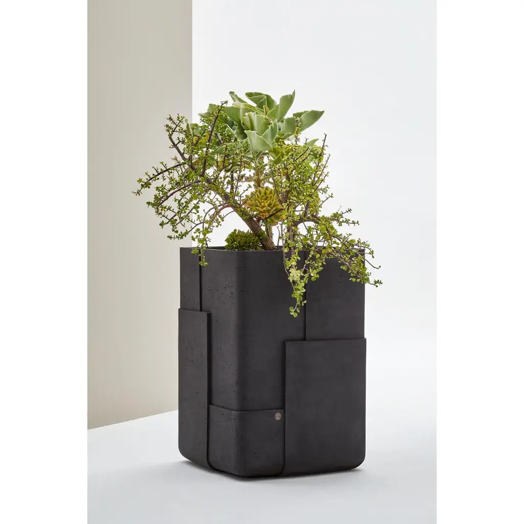 Aarde Tall Black Planter by IndigenusDesigned by Sebastian HerknerDimensions: W 75 x H 108 cm.Materials: Stone.Weight: 110 kg.Different colors and sizes are available. Please contact us.Following his honeymoon to South Africa, German designer, Sebastian Herkner, was inspired by all the aspects, elements and shades he encountered across so many areas. The Aarde (which means earth) is a representation of this; of the layering that exists culturally, demographically and in the nature and light of Africa. The Aarde has subtly overlapping layers with different depths to create the play with light and minerality that Sebastian saw in the natural landscape and wanted to represent. The earthy colours (brown, red, sandstone) used in this range are very much part of the story Sebastian wanted to communicate.Indigenus, founded in 2014, is the brainchild of Cape Town local, Peter van der Post. At the beginning of his career, whilst working in roto-moulding, Peter noticed a lack of high design planters in the market and the vision to produce the most beautiful, original, and desirable planters began to grow. Over the past 8 years, the Indigenus team has collaborated with South Africa’s top designers to create planters that are art pieces in their own right. 2022 has seen exciting collaborations further afield with internationally renowned designers and collaborators. In line with our sustainability and quality luxury objectives, we are constantly striving to make planters for life and not just for a few seasons. It has taken years of refinement, many valuable lessons learned and, ultimately, setting up our world-class factory for in-house manufacturing to be able to ensure that the planters are of the highest quality. All materials are sustainably sourced and the planters are made by hand. It is this craftsmanship that puts Indigenus in a league of its own. Each range of planters is unique and illustrates the impact that beautiful sculptural planters have on architecture and landscapes. The planters' close connection to the earth is expressed through a stable and grounded design, made with beautiful natural materials and evoking an underlying story of our relationship with the natural world.Indigenus is focused on collaboration with the world’s top designers and artists. We are committed to constant refinement and a willingness to be courageous, curious, and experimental with natural materials and new designs. We have built solid distributor networks and relationships that we are committed to maintaining and growing globally. We are proud of our roots as an African luxury brand with a global footprint.