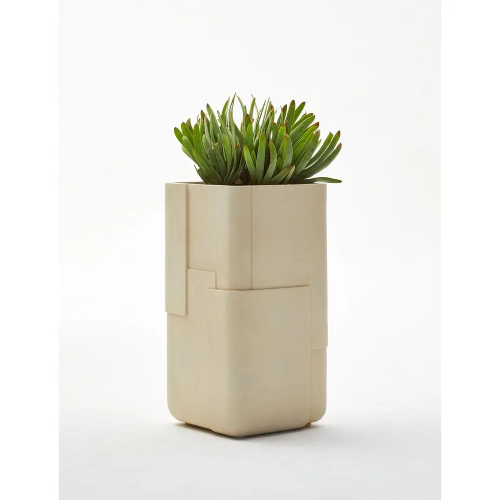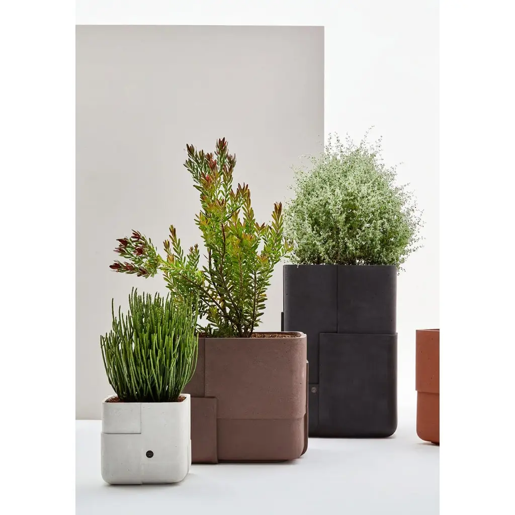 Aarde Tall XS Brown Planter by IndigenusDesigned by Sebastian HerknerDimensions: W 43 x H 81 cm.Materials: Stone.Weight: 45 kg.Different colors and sizes are available. Please contact us.Following his honeymoon to South Africa, German designer, Sebastian Herkner, was inspired by all the aspects, elements and shades he encountered across so many areas. The Aarde (which means earth) is a representation of this; of the layering that exists culturally, demographically and in the nature and light of Africa. The Aarde has subtly overlapping layers with different depths to create the play with light and minerality that Sebastian saw in the natural landscape and wanted to represent. The earthy colours (brown, red, sandstone) used in this range are very much part of the story Sebastian wanted to communicate.Indigenus, founded in 2014, is the brainchild of Cape Town local, Peter van der Post. At the beginning of his career, whilst working in roto-moulding, Peter noticed a lack of high design planters in the market and the vision to produce the most beautiful, original, and desirable planters began to grow. Over the past 8 years, the Indigenus team has collaborated with South Africa’s top designers to create planters that are art pieces in their own right. 2022 has seen exciting collaborations further afield with internationally renowned designers and collaborators. In line with our sustainability and quality luxury objectives, we are constantly striving to make planters for life and not just for a few seasons. It has taken years of refinement, many valuable lessons learned and, ultimately, setting up our world-class factory for in-house manufacturing to be able to ensure that the planters are of the highest quality. All materials are sustainably sourced and the planters are made by hand. It is this craftsmanship that puts Indigenus in a league of its own. Each range of planters is unique and illustrates the impact that beautiful sculptural planters have on architecture and landscapes. The planters' close connection to the earth is expressed through a stable and grounded design, made with beautiful natural materials and evoking an underlying story of our relationship with the natural world.Indigenus is focused on collaboration with the world’s top designers and artists. We are committed to constant refinement and a willingness to be courageous, curious, and experimental with natural materials and new designs. We have built solid distributor networks and relationships that we are committed to maintaining and growing globally. We are proud of our roots as an African luxury brand with a global footprint.