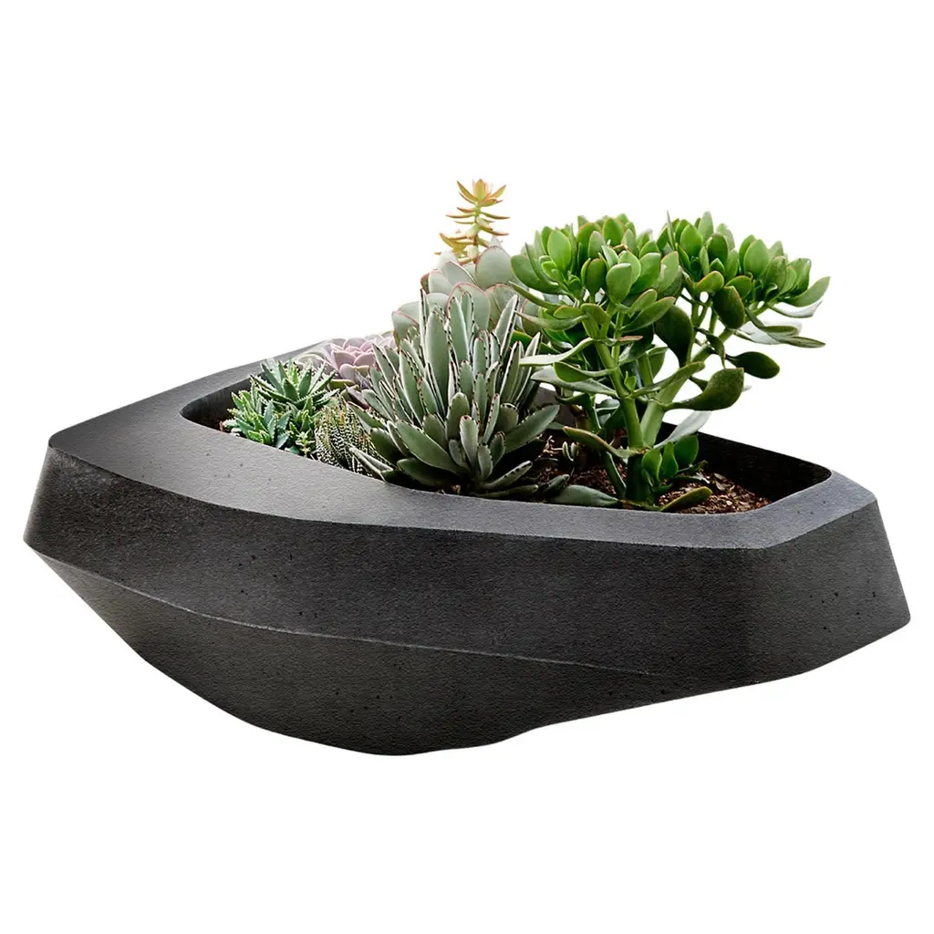 Aarde Trough Grey Planter by IndigenusDesigned by Sebastian HerknerDimensions: W 140 x H 69 cm.Materials: Stone.Weight: 115 kg.Different colors and sizes are available. Please contact us.Following his honeymoon to South Africa, German designer, Sebastian Herkner, was inspired by all the aspects, elements and shades he encountered across so many areas. The Aarde (which means earth) is a representation of this; of the layering that exists culturally, demographically and in the nature and light of Africa. The Aarde has subtly overlapping layers with different depths to create the play with light and minerality that Sebastian saw in the natural landscape and wanted to represent. The earthy colours (brown, red, sandstone) used in this range are very much part of the story Sebastian wanted to communicate.Indigenus, founded in 2014, is the brainchild of Cape Town local, Peter van der Post. At the beginning of his career, whilst working in roto-moulding, Peter noticed a lack of high design planters in the market and the vision to produce the most beautiful, original, and desirable planters began to grow. Over the past 8 years, the Indigenus team has collaborated with South Africa’s top designers to create planters that are art pieces in their own right. 2022 has seen exciting collaborations further afield with internationally renowned designers and collaborators. In line with our sustainability and quality luxury objectives, we are constantly striving to make planters for life and not just for a few seasons. It has taken years of refinement, many valuable lessons learned and, ultimately, setting up our world-class factory for in-house manufacturing to be able to ensure that the planters are of the highest quality. All materials are sustainably sourced and the planters are made by hand. It is this craftsmanship that puts Indigenus in a league of its own. Each range of planters is unique and illustrates the impact that beautiful sculptural planters have on architecture and landscapes. The planters' close connection to the earth is expressed through a stable and grounded design, made with beautiful natural materials and evoking an underlying story of our relationship with the natural world.Indigenus is focused on collaboration with the world’s top designers and artists. We are committed to constant refinement and a willingness to be courageous, curious, and experimental with natural materials and new designs. We have built solid distributor networks and relationships that we are committed to maintaining and growing globally. We are proud of our roots as an African luxury brand with a global footprint.